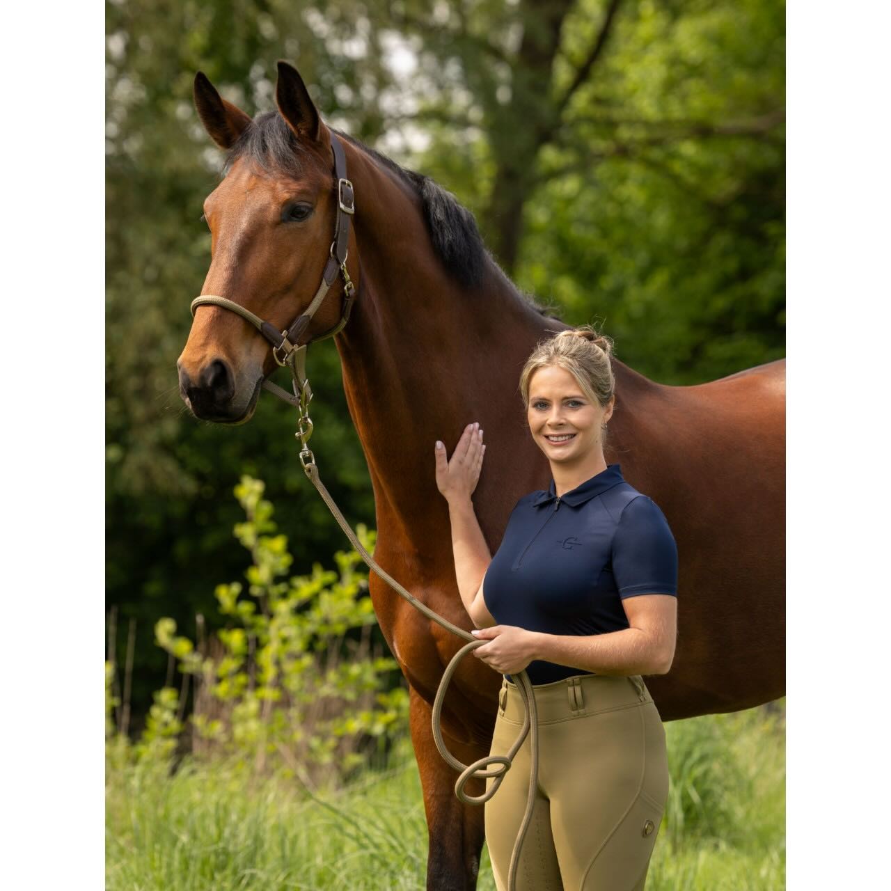 Der feminine, taillierte Schnitt verleiht dem Poloshirt eine elegante Ausstrahlung. Es lässt sich vielseitig mit Reithosen oder Jeans kombinieren. Dadurch passt es sowohl in den Stall als auch in den Alltag. Das funktionale Design verbindet Sportlichkeit mit moderner Optik. Die hochwertige Verarbeitung sorgt für Formstabilität auch bei häufigem Tragen. So ergänzt das Shirt deine Reitsportgarderobe stilvoll und funktional.