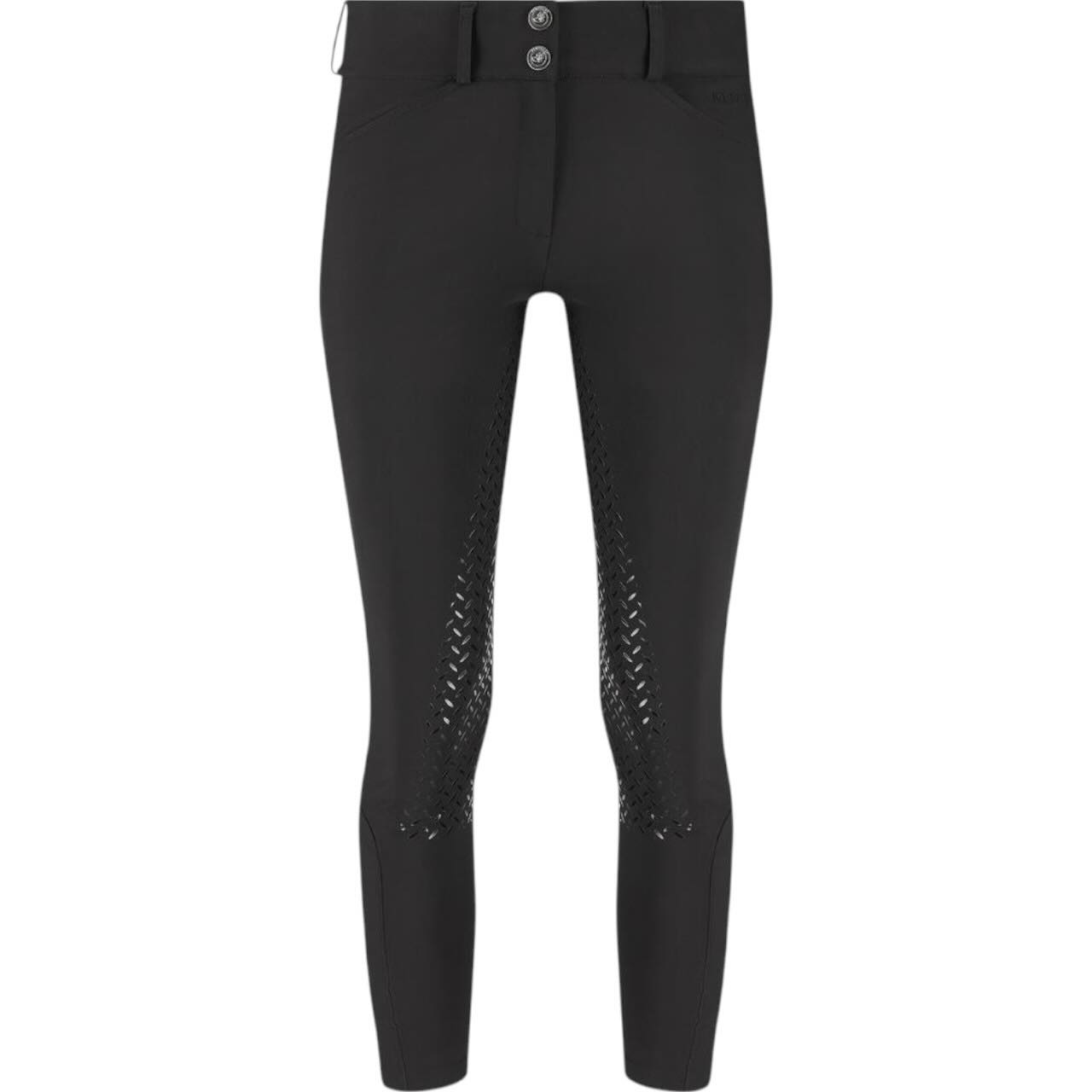 Ein rutschfester Einsatz am Bund sorgt dafür, dass dein Shirt immer an Ort und Stelle bleibt. Der Full-Grip-Vollbesatz bietet dir sicheren Halt im Sattel – besonders bei anspruchsvollen Lektionen. Auch das Beinende wurde clever gestaltet: Eng anliegend und mit atmungsaktiven Details ausgestattet, verhindert es Hitzestau und unangenehmes Scheuern. Die Gürtelschlaufen unterstreichen den klassischen Look und bieten zugleich Funktionalität. Dezente Logos auf Kniegrip und Tasche zeigen Markenbewusstsein mit Stil, während der Knopf mit Original-Kentucky-Logo das hochwertige Finish abrundet. Diese durchdachte Konstruktion gibt dir Stabilität, Sicherheit und ein gepflegtes Auftreten.