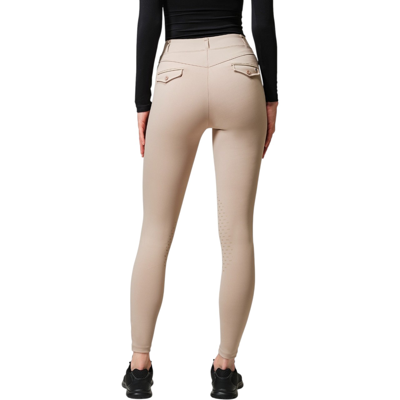 Ein hoher Bund sorgt für zuverlässigen Halt, auch bei intensiven Trainingseinheiten. Die kompressive Wirkung unterstützt deine Muskulatur und fördert eine aufrechte Haltung im Sattel. Durch den elastischen 4-Wege-Stretch passt sich die Reitleggings Premium jeder Körperform an, ohne einzuengen. Die Stoffqualität bleibt auch nach häufigem Waschen formbeständig und weich. Die seitlichen Taschen bieten ausreichend Platz für dein Smartphone oder kleine Utensilien. So vereint dieses Modell höchsten Komfort mit praktischen Features für den Reitalltag.