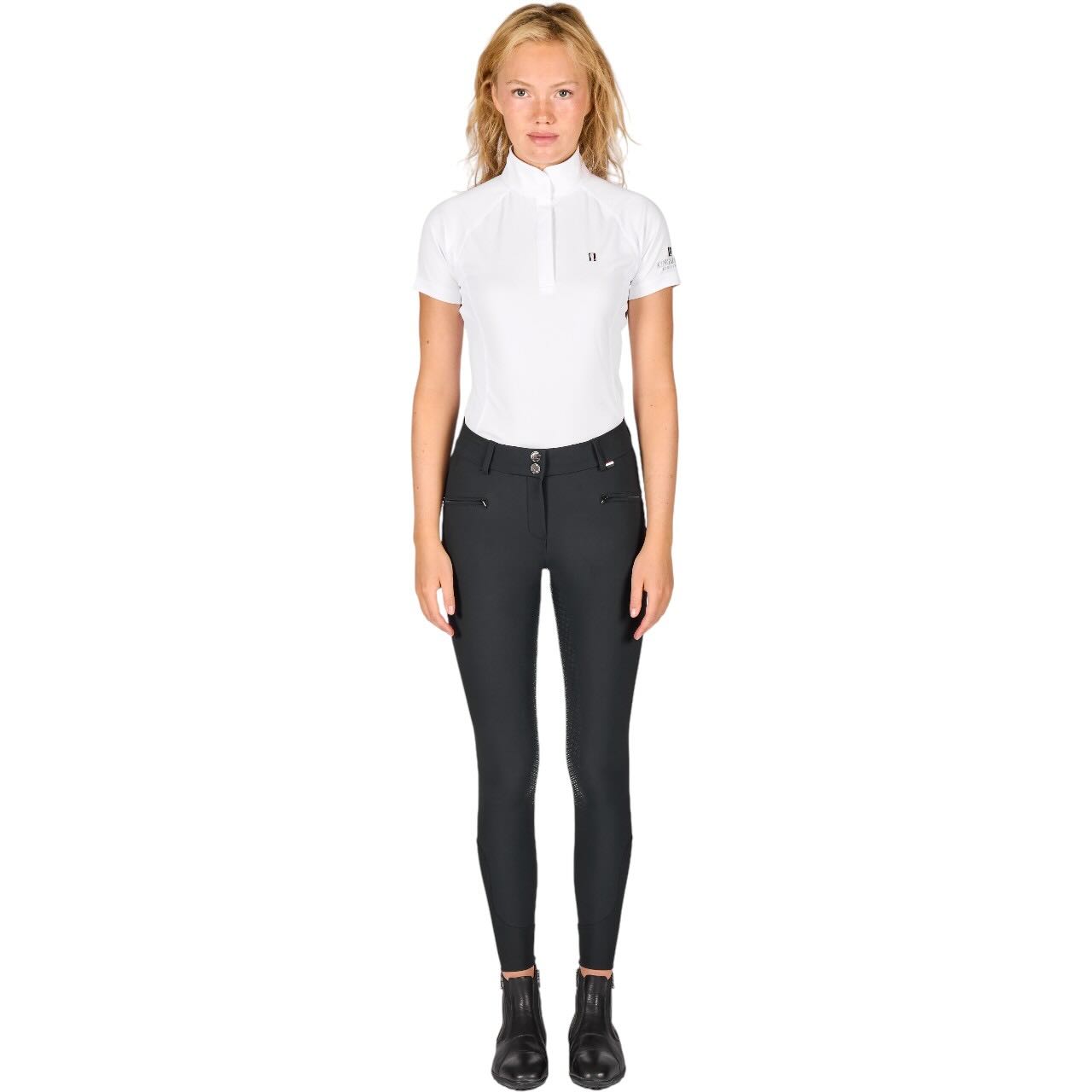 Der Full-Grip Besatz unterstützt eine stabile Beinlage und optimalen Halt im Sattel. Besonders in Dressurarbeit oder beim Springtraining profitierst du von zusätzlicher Sicherheit. Die H-Shape Konstruktion unterstreicht eine feminine, moderne Passform. Optisch setzen Swarovski-Verzierungen an den Gesäßtaschen stilvolle Akzente. Dadurch verbindet die Damenreithose technische Innovation mit eleganter Ausstrahlung. Passt sie sich unterschiedlichen Figurtypen präzise an.
