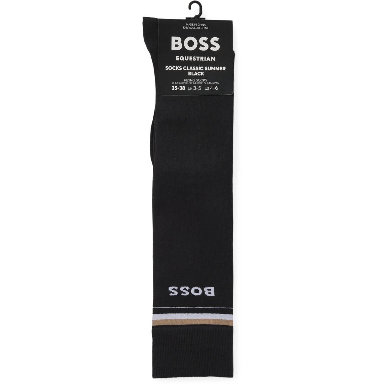 Die Classic Summer Kniestrümpfe bestechen durch ihr stilvolles Design mit dem markanten Signature Stripe am Bund und dem dezenten BOSS Logo seitlich. Diese optischen Highlights verbinden sich mit funktionalen Vorteilen, wie der Rutschbremse, die für sicheren Halt im Reitstiefel sorgt. Egal, ob du dich für die Farben Black, Grey oder Sky Captain entscheidest, diese Socken verleihen deinem Reitoutfit eine elegante Note.