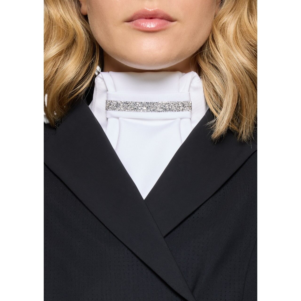 Mit dem Samshield Plastron Damen Premium FS 2026 setzt du auf einen stilvollen Begleiter für Turnier und Training. Das elegante Design unterstreicht deine Silhouette und sorgt für eine gepflegte, professionelle Ausstrahlung im Sattel. Eine ultrafeine Swarovski-Kristallborte auf der Vorderseite verleiht dem Plastron einen dezenten, luxuriösen Akzent. Das markante Samshield-Logo am unteren Abschluss rundet den hochwertigen Look ab. Die klare Linienführung sorgt für eine moderne und zugleich zeitlose Turnieroptik. Damit passt das Plastron ideal zu klassischen Turnierblusen und stilvollen Reitjackets.