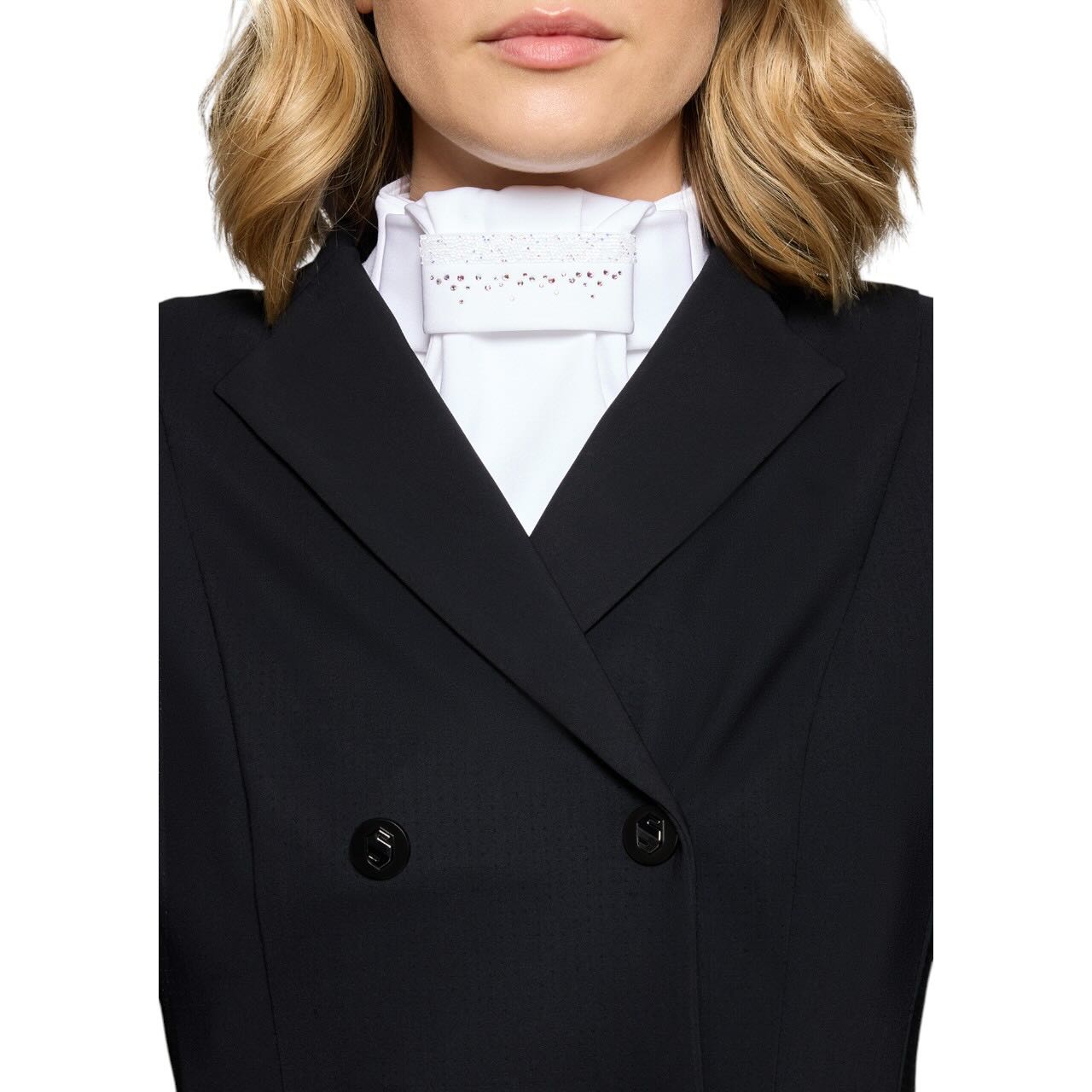 Das Samshield Plastron Damen Premium Rain FS 2026 Turnierplastron vereint sportliche Funktionalität mit eleganter Turnierästhetik. Hochwertige Materialien, ein femininer Schnitt und edle Swarovski-Details machen dieses Premium-Plastron zu einem stilvollen Begleiter für anspruchsvolle Reiterinnen – selbst bei wechselhaften Wetterbedingungen.