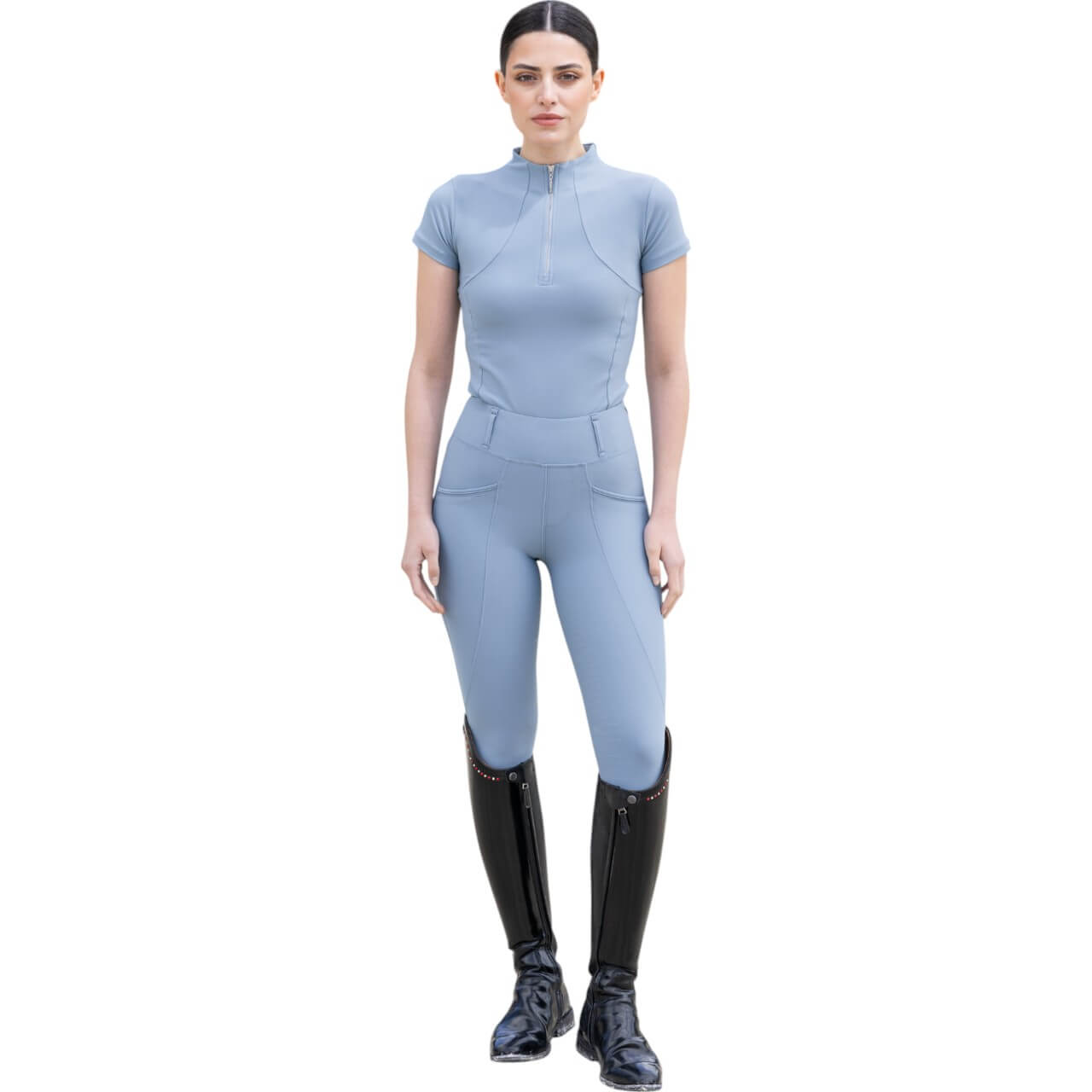 Diese Reitleggings bestechen durch ihr modernes und elegantes Design, das in zahlreichen Farben erhältlich ist. Die hohe Taille und der breite Bund sorgen nicht nur für eine schmeichelhafte Silhouette, sondern bieten dir auch den nötigen Halt im Sattel. Die nahtlose Konstruktion verhindert Druckstellen und sorgt für einen glatten Look, der sich perfekt an deinen Körper anpasst.