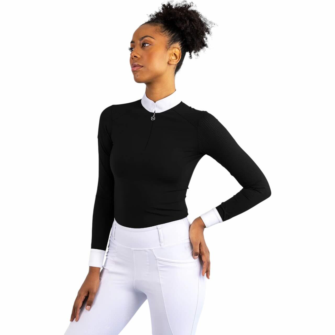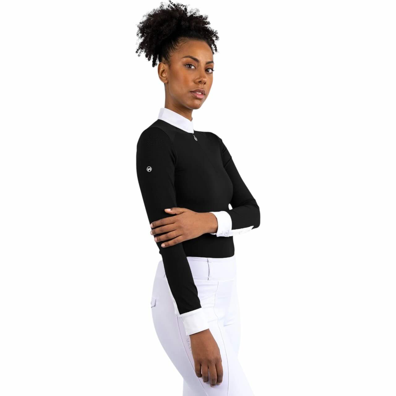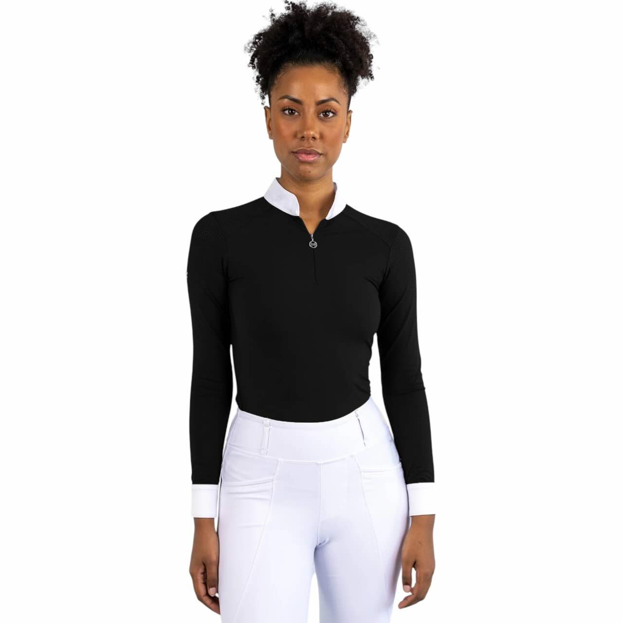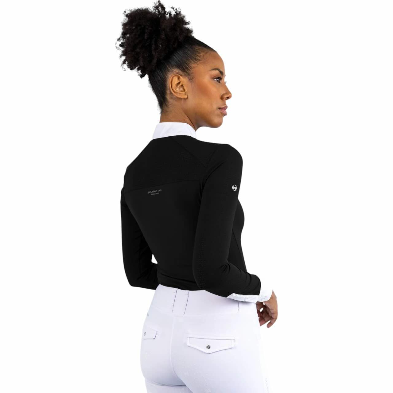 Turniershirt Damen Air Show Langarmshirt von Maximilian Equestrian vereint stilvolles Design mit außergewöhnlicher Funktionalität. Dank der innovativen Mikroperforationstechnologie und dem High-Tech-Gewebe genießt du höchsten Tragekomfort bei optimaler Leistung. Lass dich von der Kombination aus Eleganz und High-Performance überzeugen!