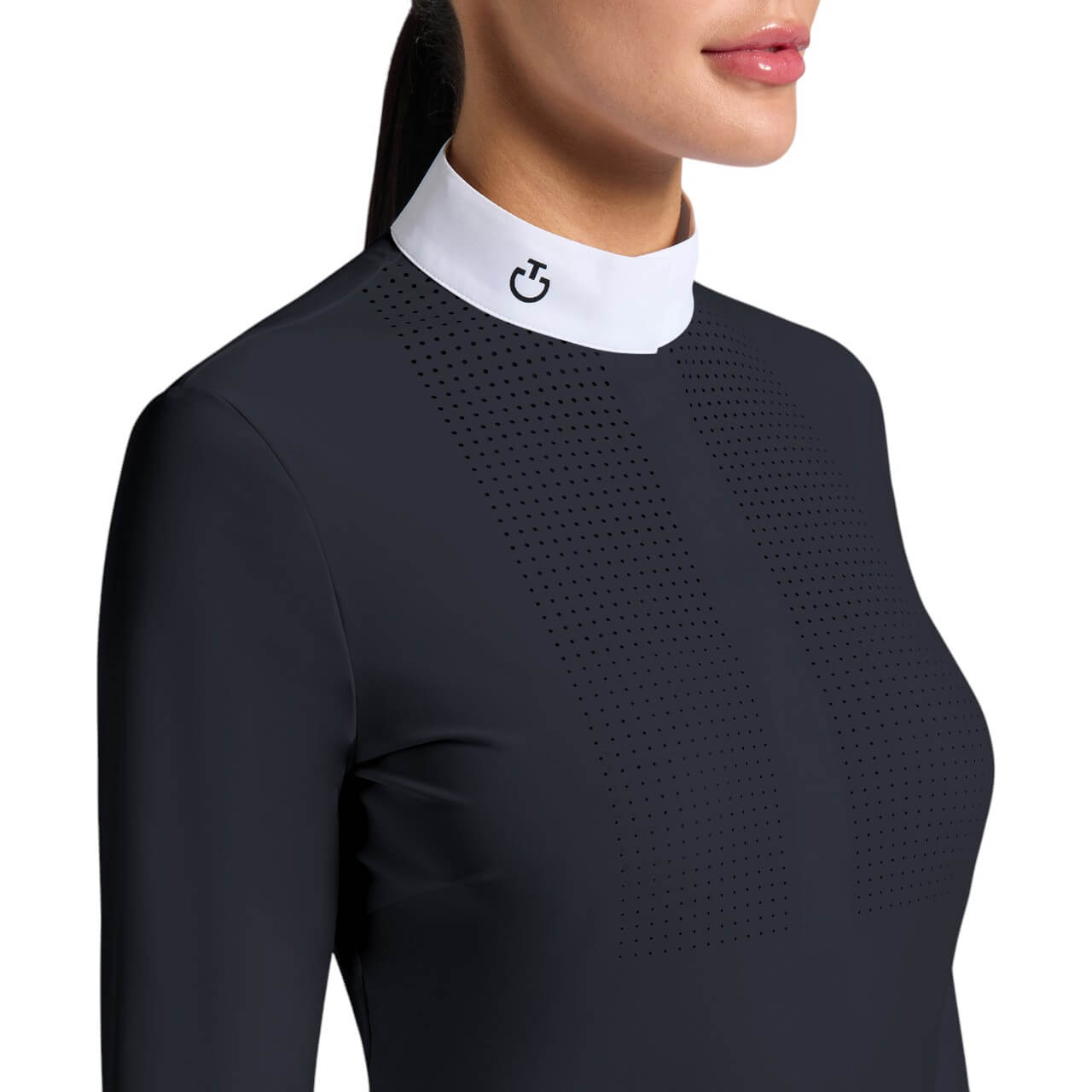 Das Turniershirt CT Heat Sealed Perforated Funktionsshirt überzeugt mit einem modernen Look und feinen Details. Die dezente Logostickerei fügt sich harmonisch in das Design ein. Ein klassischer Popelinekragen sorgt für den perfekten Turnier-Look. Durch die hochwertigen Verarbeitung bleibt die Passform auch nach häufigem Waschen erhalten. Ideal für anspruchsvolle Reiterinnen.
