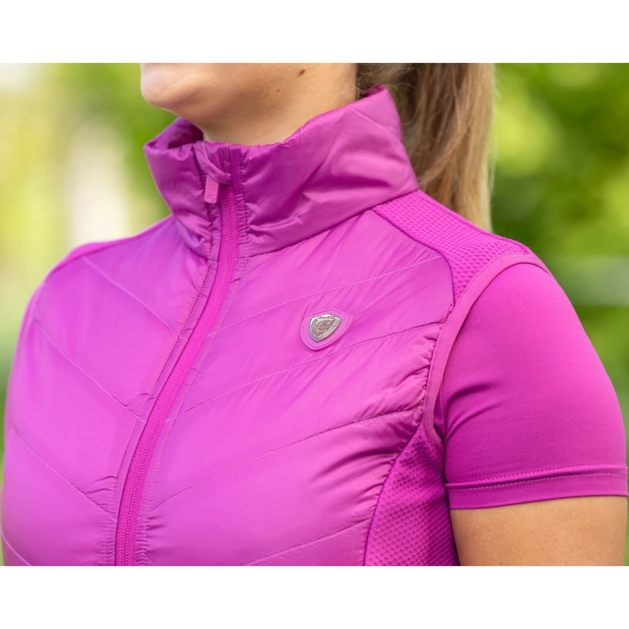 Der feminine, taillierte Schnitt unterstreicht eine sportliche Silhouette. Zwei Einschubtaschen mit Reißverschluss bieten sicheren Stauraum. Der 2-Wege-Reißverschluss erhöht die Flexibilität beim Tragen im Sattel. Dadurch lässt sich die Weste individuell anpassen. Sie ist pflegeleicht und bei 30 °C maschinenwaschbar. Das macht sie besonders alltagstauglich.