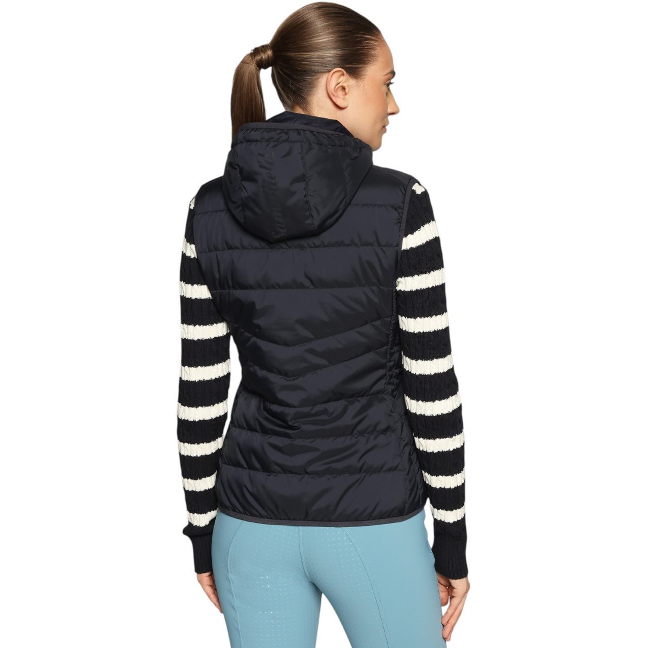 Der feminine Slim Fit Schnitt sorgt für eine sportliche Silhouette, ohne deine Bewegungsfreiheit einzuschränken. Dadurch eignet sich die Weste optimal für aktive Reiterinnen im Training oder im Stallalltag. Die abnehmbare Kapuze passt sich flexibel deinem Tagesablauf an. Bei Bedarf schützt sie zusätzlich vor Wind und Wetter. Der durchgehende Frontreißverschluss ermöglicht ein schnelles An- und Ausziehen. Zwei Reißverschlusstaschen bieten Platz für kleine Essentials.