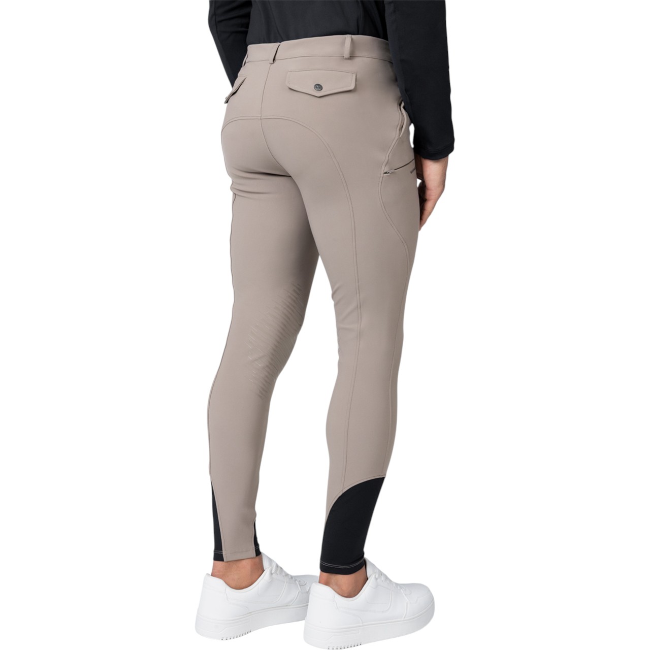 Die Reithose besteht aus einem fortschrittlichen Performance-Stoff mit 360° Stretch, der jede Bewegung unterstützt und dir höchste Flexibilität ermöglicht. Ergonomische Nähte sorgen für eine intelligente Passform, die auch bei langen Ritten angenehm bleibt. Dank präziser Verarbeitung sitzt die Hose sicher und stabil. Praktische Front- und Gesäßtaschen bieten Platz für kleine Essentials. Stretch-Einsätze an den Unterschenkeln erleichtern das Anziehen und erhöhen den Komfort. Zusätzlich sorgt ein Silikonstreifen am Bund dafür, dass dein Oberteil nicht verrutscht.