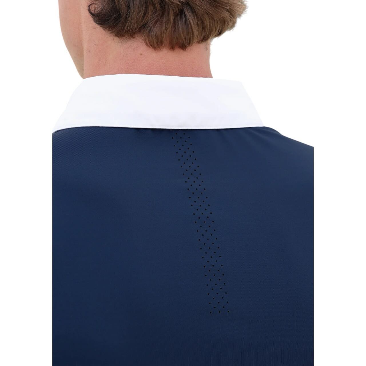 Gefertigt aus einem 360° Stretch-Performance-Stoff, ermöglicht dir das Shirt volle Bewegungsfreiheit bei jedem Ritt. Dank seiner schnelltrocknenden und atmungsaktiven Eigenschaften bleibst du auch an heißen Wettkampftagen angenehm kühl. Die perforierte Streifenkonstruktion auf der Rückseite sorgt für optimalen Luftstrom.