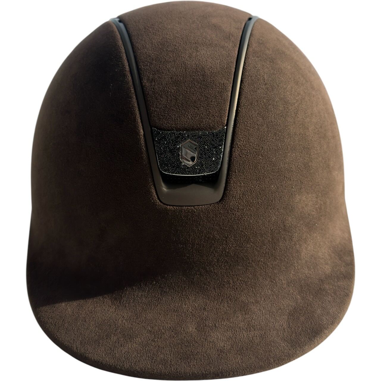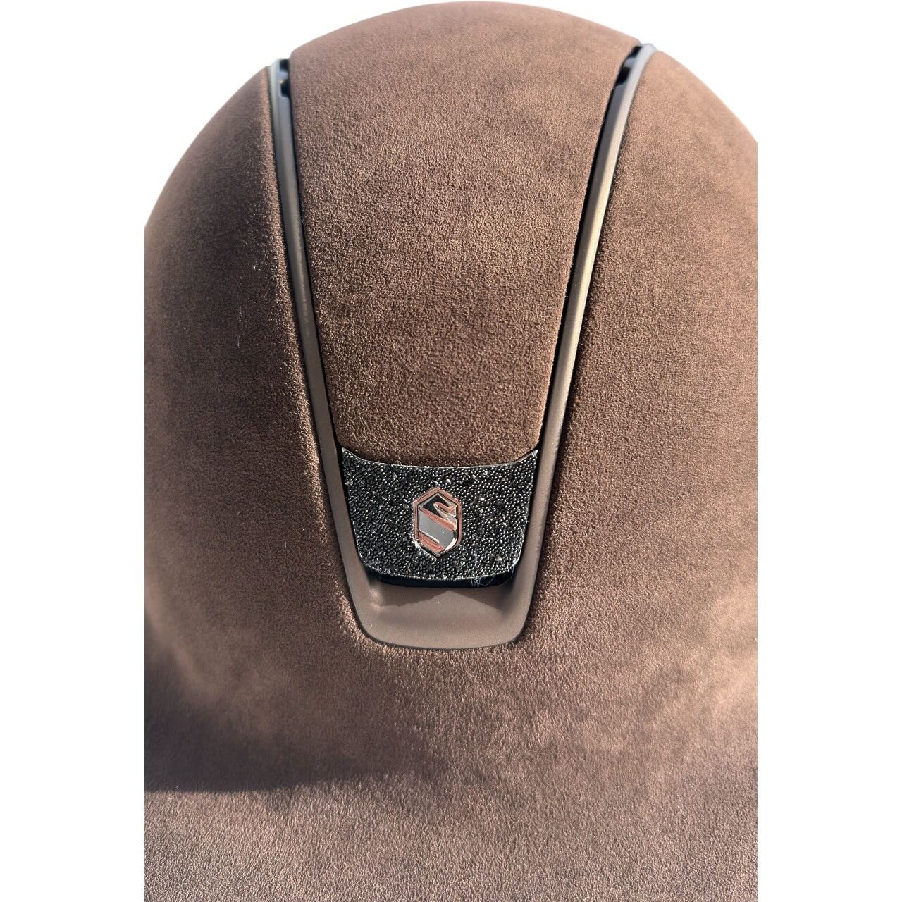 Reithelm Shadowmatt 2.0 Brown Alcantara Blason Crystal Fabric Black von Samshield vereint maximale Sicherheit mit atemberaubendem Design. Erlebe den Komfort und die Sicherheit, die dich bei jedem Ritt begleiten, während du zugleich mit einem eleganten Look beeindruckst.