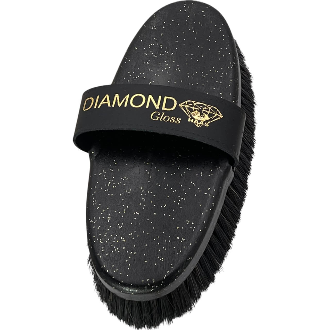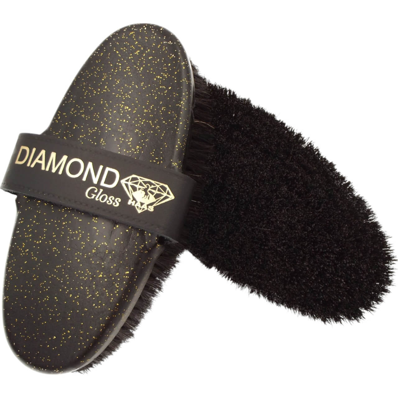 Die Diamond Gloss besticht durch ihren hochwertigen Kunststoffkörper mit stilvollem Glitzereffekt. Das edle Schwarz verleiht der Kardätsche eine exklusive Optik, während die handliche Form für eine komfortable Anwendung sorgt. Die integrierte Lederhandschlaufe bietet zusätzlichen Halt und verhindert ein Abrutschen während des Bürstens.