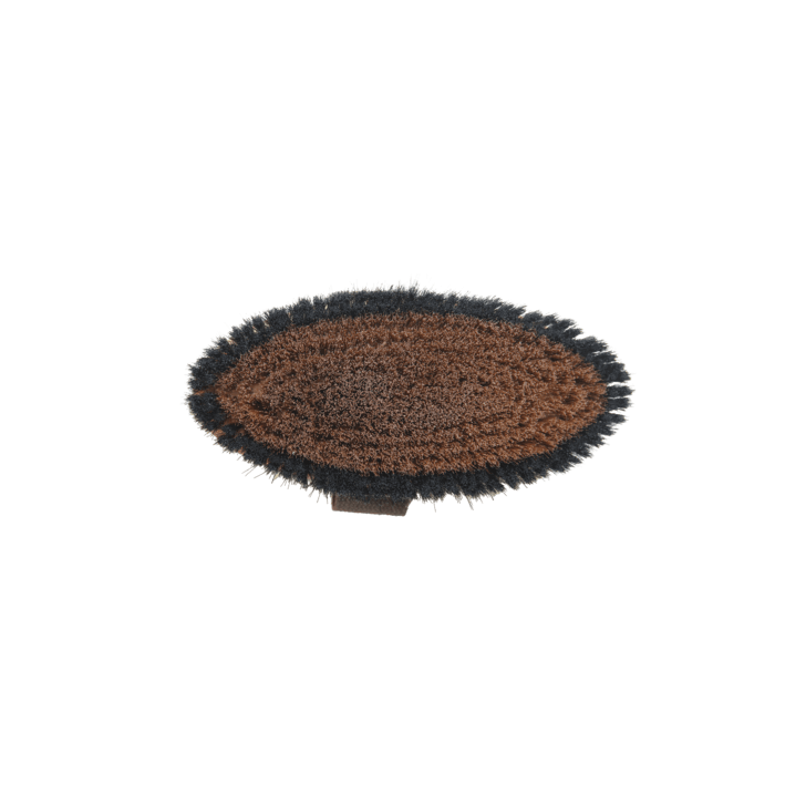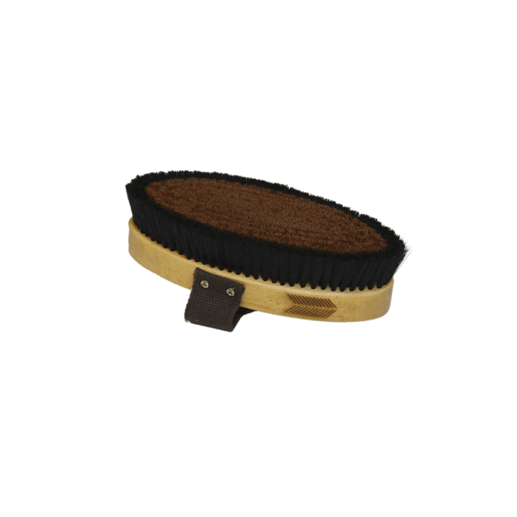 Die ovale, lackierte Bürste besticht durch ihr elegantes Design und die hochwertigen, harten Nylonborsten. Der Baumwollgriff ermöglicht einen sicheren Halt, während die anatomische Form der Kardätsche eine einfache Handhabung bietet. Die glatten Borsten in der Mitte verstärken den Pflegeeffekt und heben den Glanz des Fells hervor.
