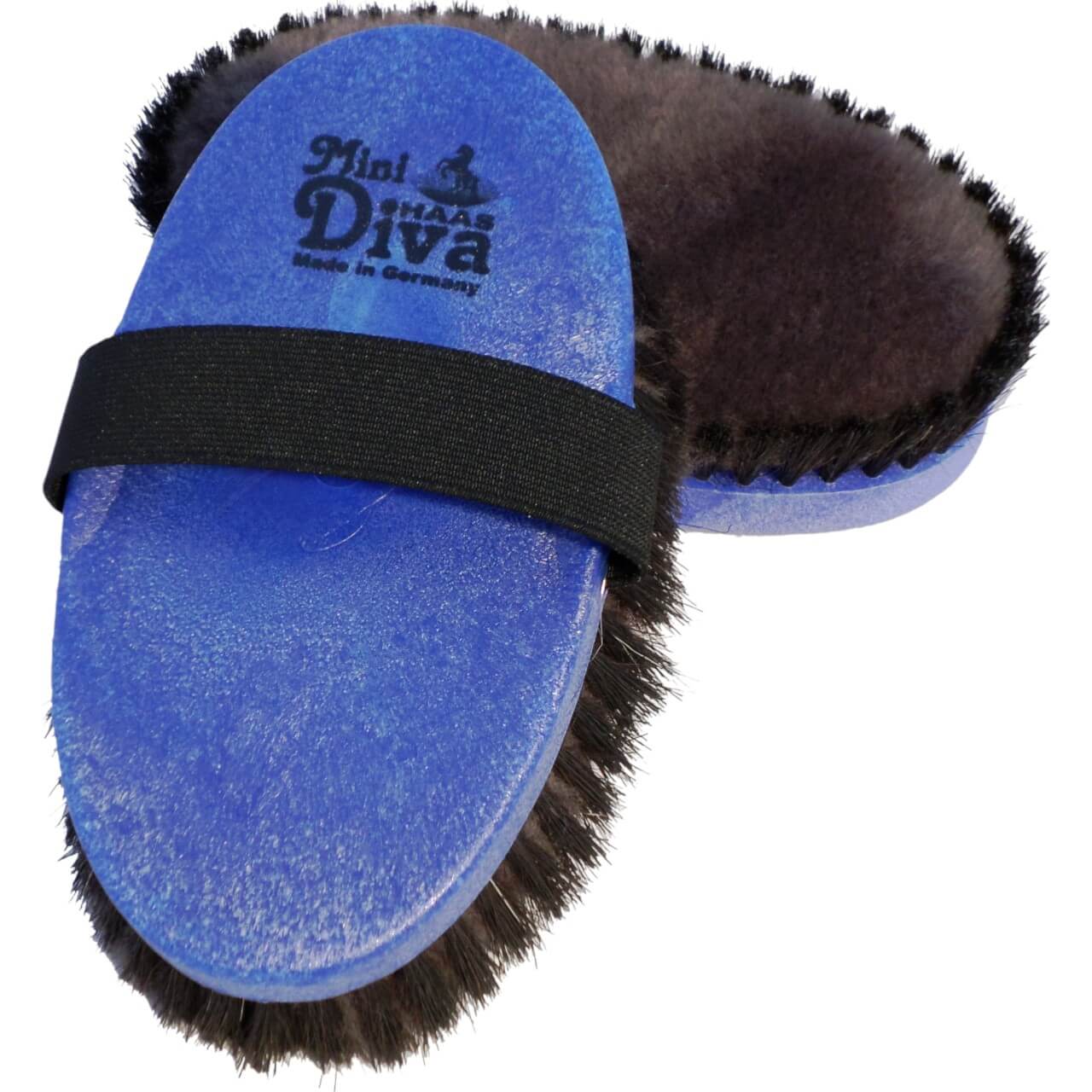 Die Diva mini besticht durch ihre elegante blaue Farbgebung und den kompakten Kunststoffkörper. Das durchdachte Design liegt optimal in der Hand und ermöglicht ein angenehmes Bürsten. Der ästhetische Look wird durch das weiche Lammfellkissen abgerundet, das von einem äußeren Borstenkranz umgeben ist.