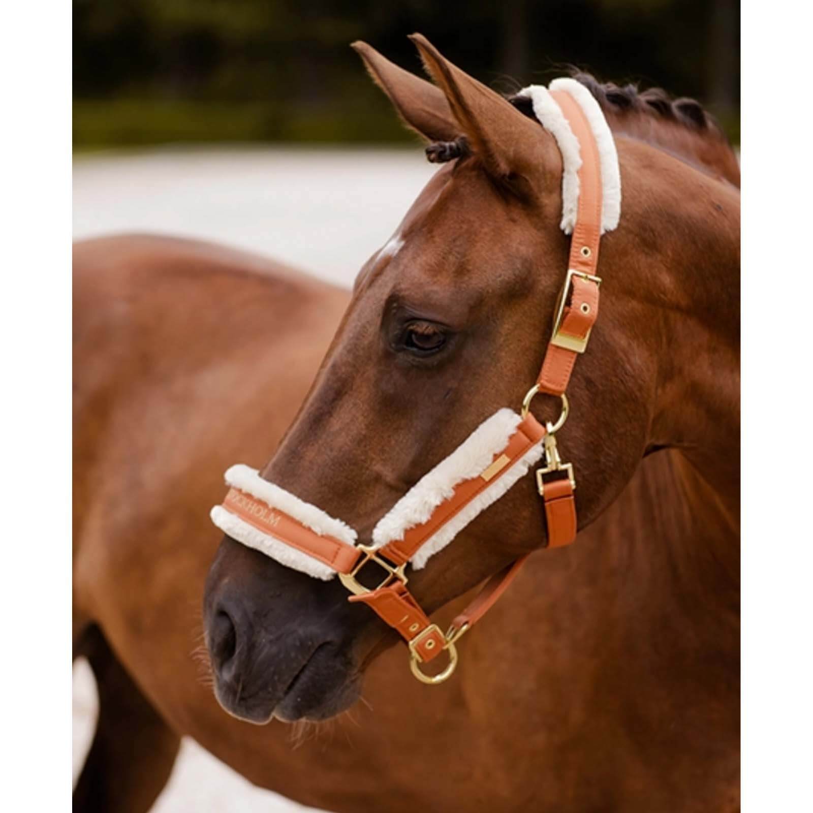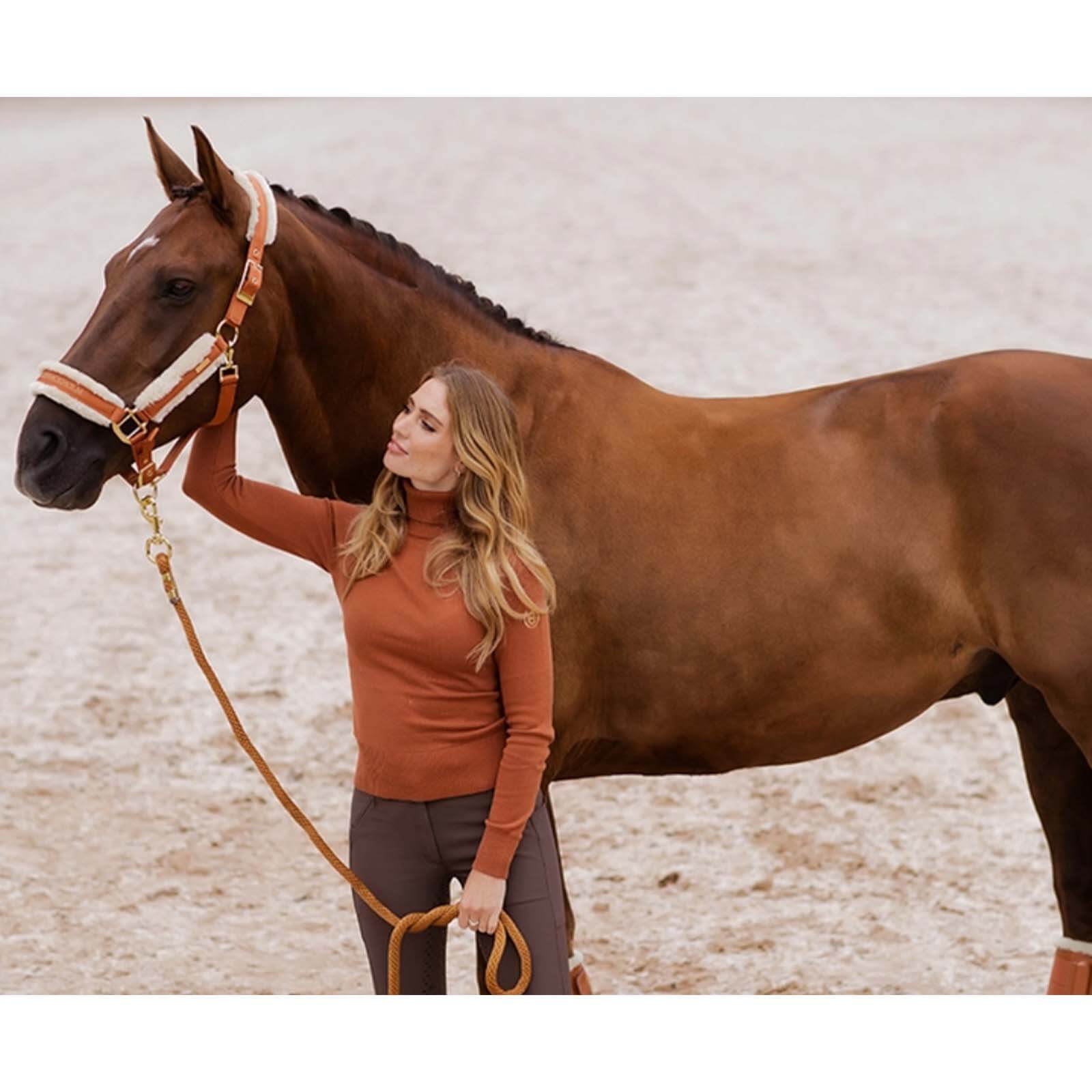 Das Halfter + Führstrick Set besticht durch sein warmes Copper Orange und die edlen goldenen Schnallen, die ihm einen luxuriösen Touch verleihen. Der Nasenriemen ist mit einem goldenen Equestrian Stockholm Logo verziert, das für einen exklusiven Look sorgt. Diese durchdachten Designmerkmale gewährleisten, dass dein Pferd nicht nur gut aussieht, sondern auch optimalen Tragekomfort genießt.