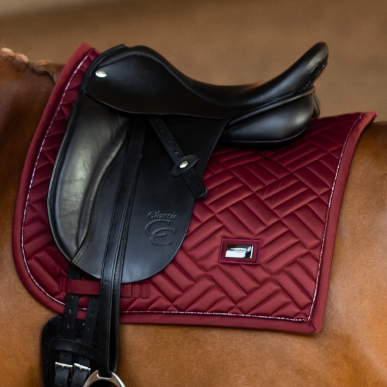 Die Equestrian Stockholm Dressurschabracke Modern Bordeaux Schabracke vereint anspruchsvolles Design mit moderner Funktionalität. In einem edlen Bordeauxton gehalten, verleiht sie deinem Pferd einen stilvollen Auftritt in der Dressur. Die dezente schwarze Metallplakette unterstreicht das hochwertige Erscheinungsbild. Diese Schabracke ist weit mehr als nur ein Blickfang – sie wurde entwickelt, um Reiter und Pferd optimal zu unterstützen. Überzeug dich selbst von einer Kombination aus durchdachter Formgebung, hochwertigen Materialien und praktischer Alltagstauglichkeit. Eine perfekte Wahl für alle, die Komfort und Stil im Training oder auf dem Turnier verbinden möchten.