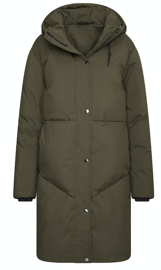 Der ESLavar Classic Damenmantel besticht durch sein zeitloses Design in der Farbe Army. Die abnehmbare Kapuze und glänzende Druckknöpfe verleihen dem Mantel eine schicke Optik, während das Logo-Emblem im Brustbereich für einen markanten Akzent sorgt. Die großzügigen Taschen bieten nicht nur Stauraum, sondern auch Schutz vor Wind und Regen.