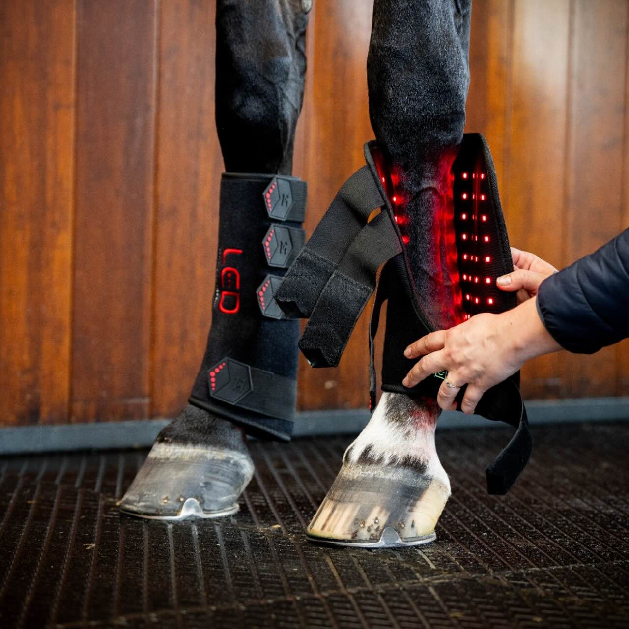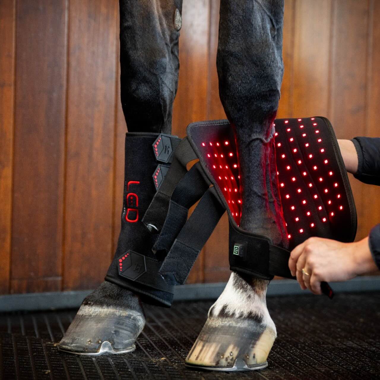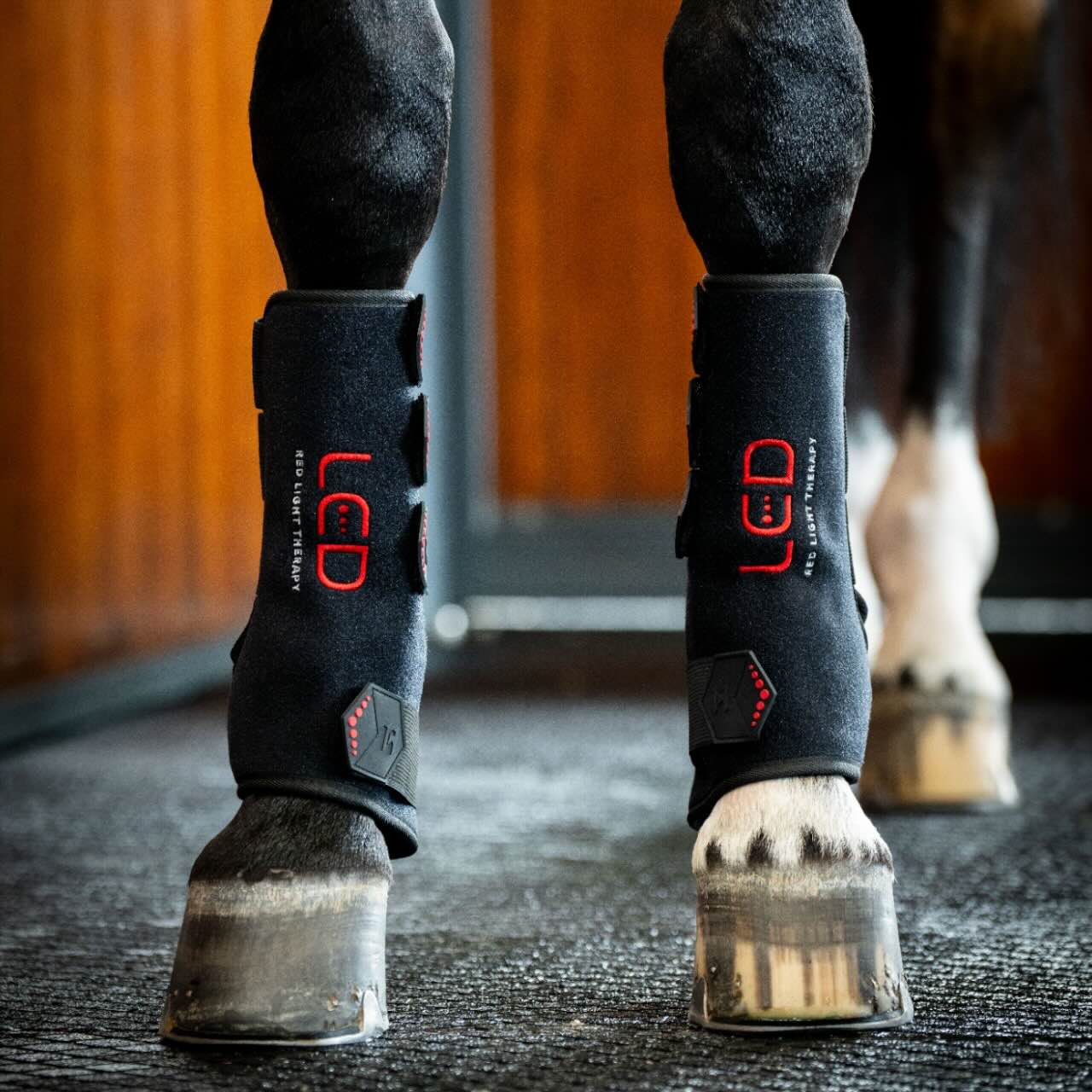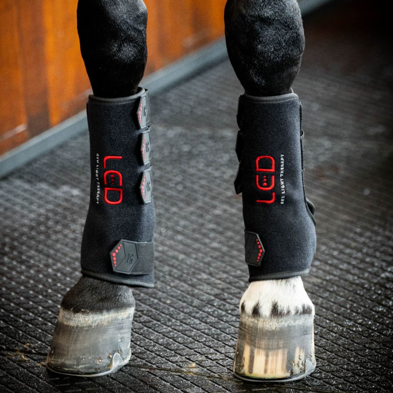 Das Außenmaterial besteht aus flexiblem Neopren mit Klettverschlussriemen, die für sicheren Halt sorgen. Im Inneren ist perforiertes Neopren mit den LED-Pixeln integriert, was eine gleichmäßige Behandlung ermöglicht. Der eingebaute Akku ist über USB-C aufladbar und erlaubt kabellose Nutzung. Dank 15-Minuten-Timer und Pulsfunktion ist die Anwendung besonders komfortabel. Die Bedienung erfolgt per Knopfdruck und ist intuitiv gestaltet. So kannst du dein Pferd unkompliziert und regelmäßig mit Lichttherapie versorgen.