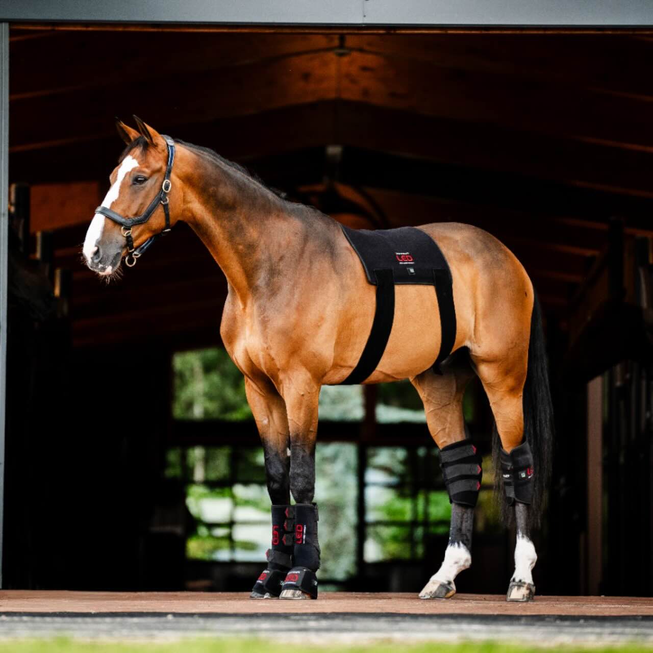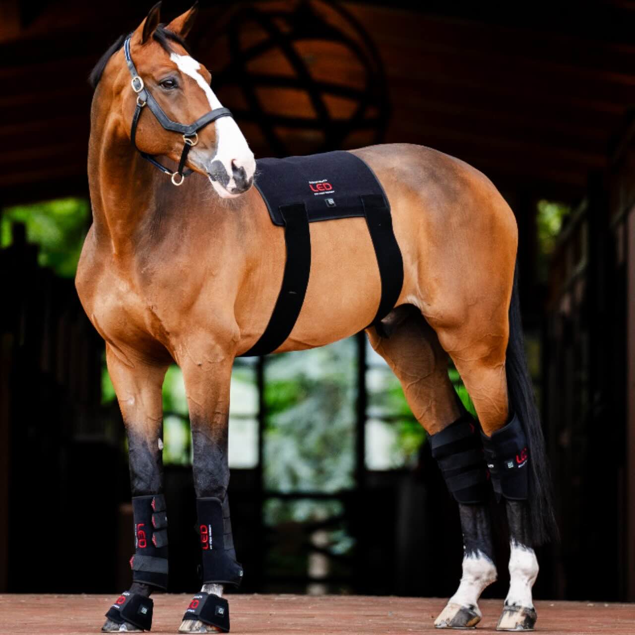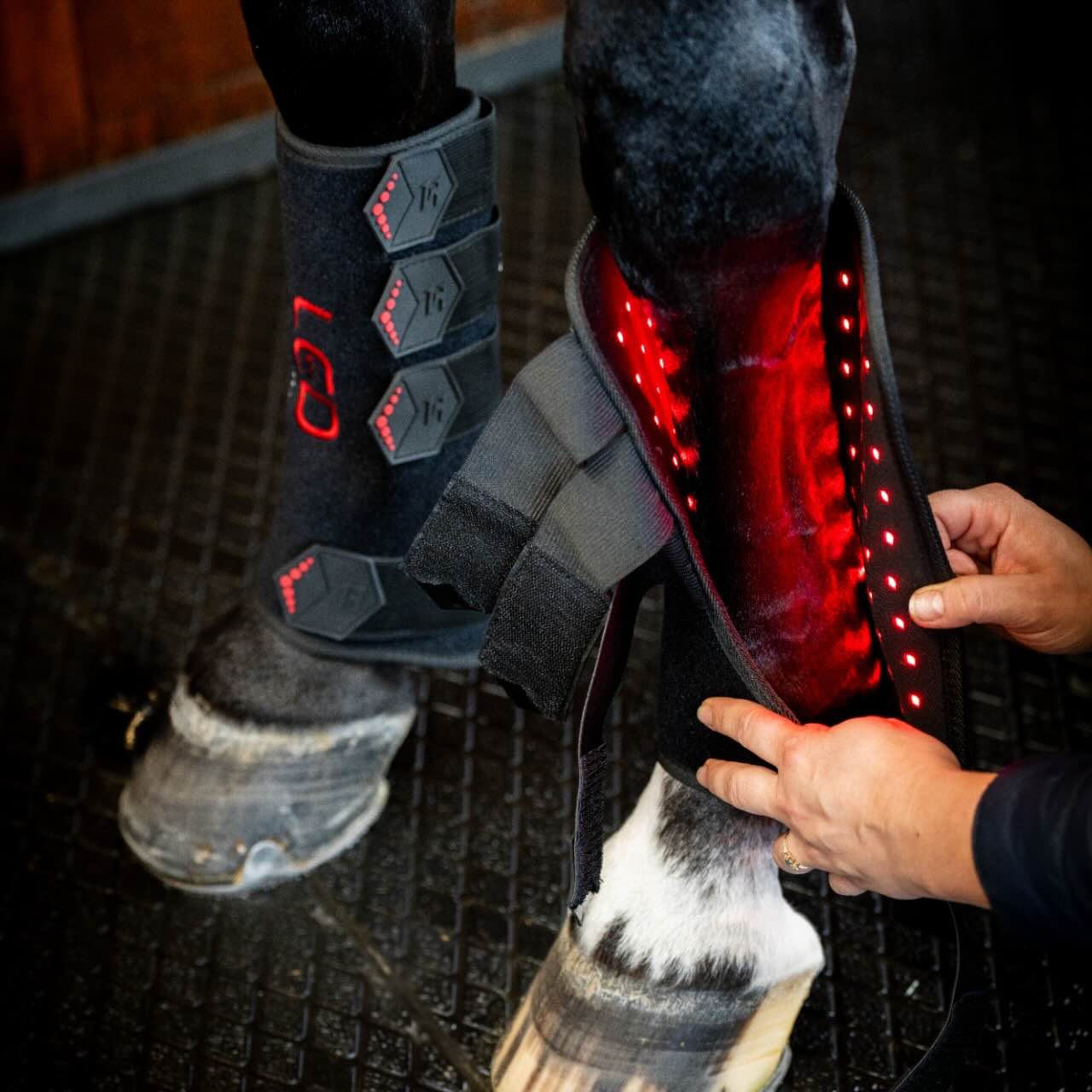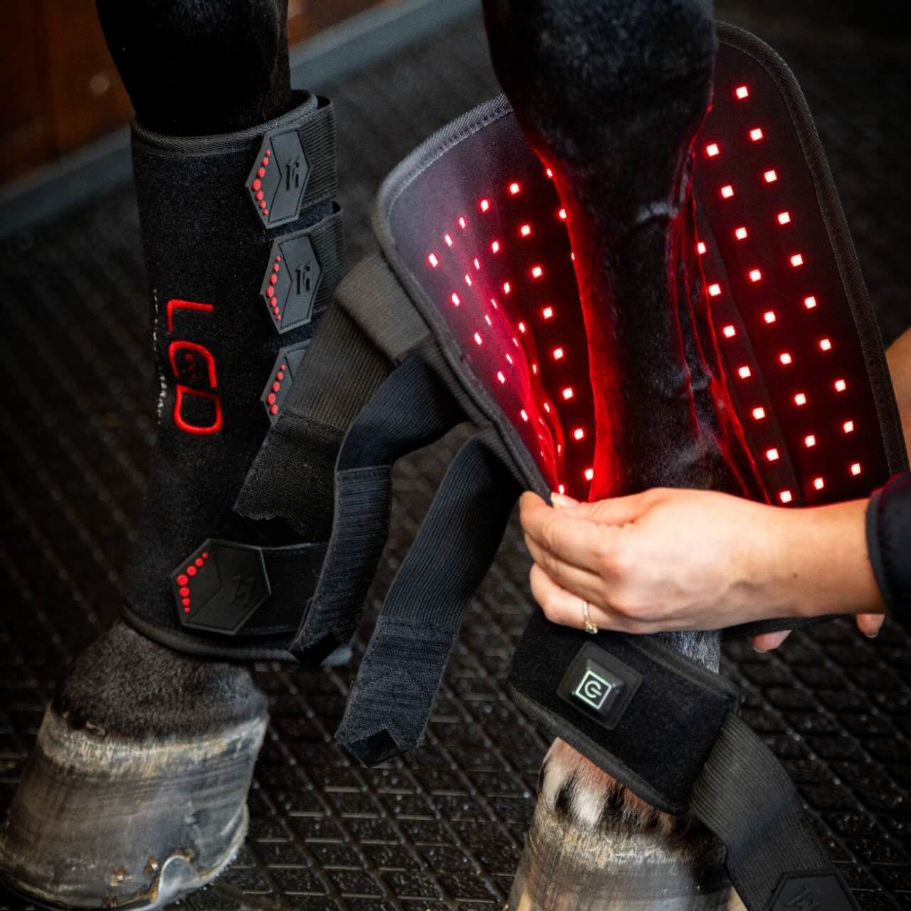Das Außenmaterial besteht aus flexiblem Neopren mit Klettverschlussriemen, die für sicheren Halt sorgen. Im Inneren ist perforiertes Neopren mit den LED-Pixeln integriert, was eine gleichmäßige Behandlung ermöglicht. Der eingebaute Akku ist über USB-C aufladbar und erlaubt kabellose Nutzung. Dank 15-Minuten-Timer und Pulsfunktion ist die Anwendung besonders komfortabel. Die Bedienung erfolgt per Knopfdruck und ist intuitiv gestaltet. So kannst du dein Pferd unkompliziert und regelmäßig mit Lichttherapie versorgen.