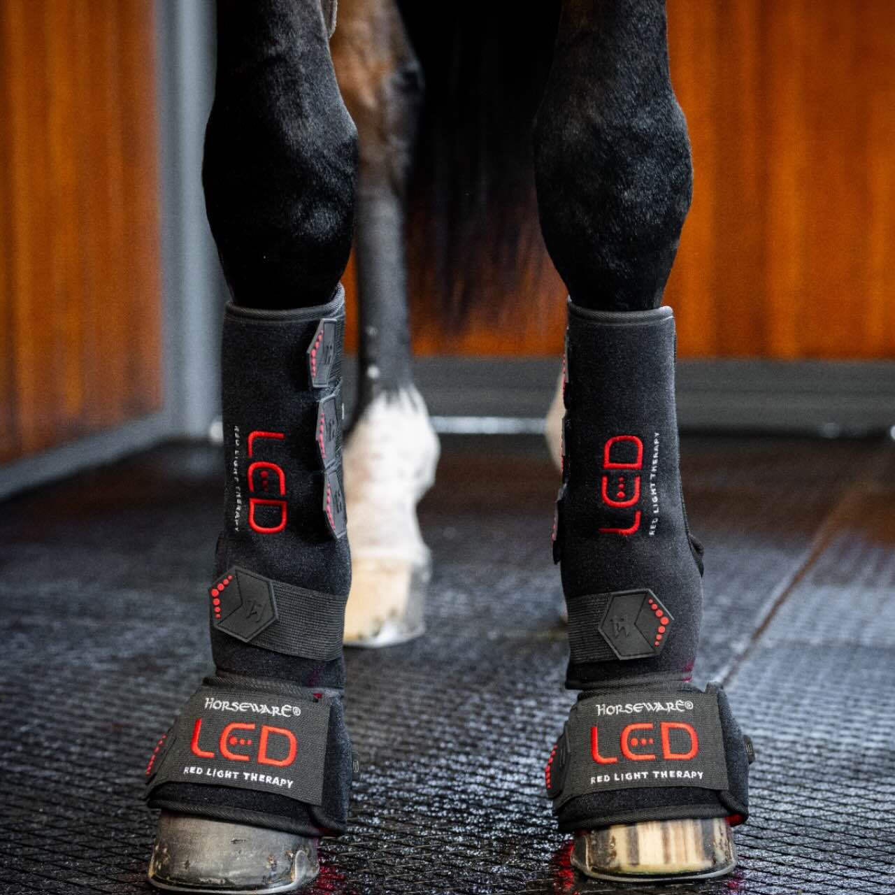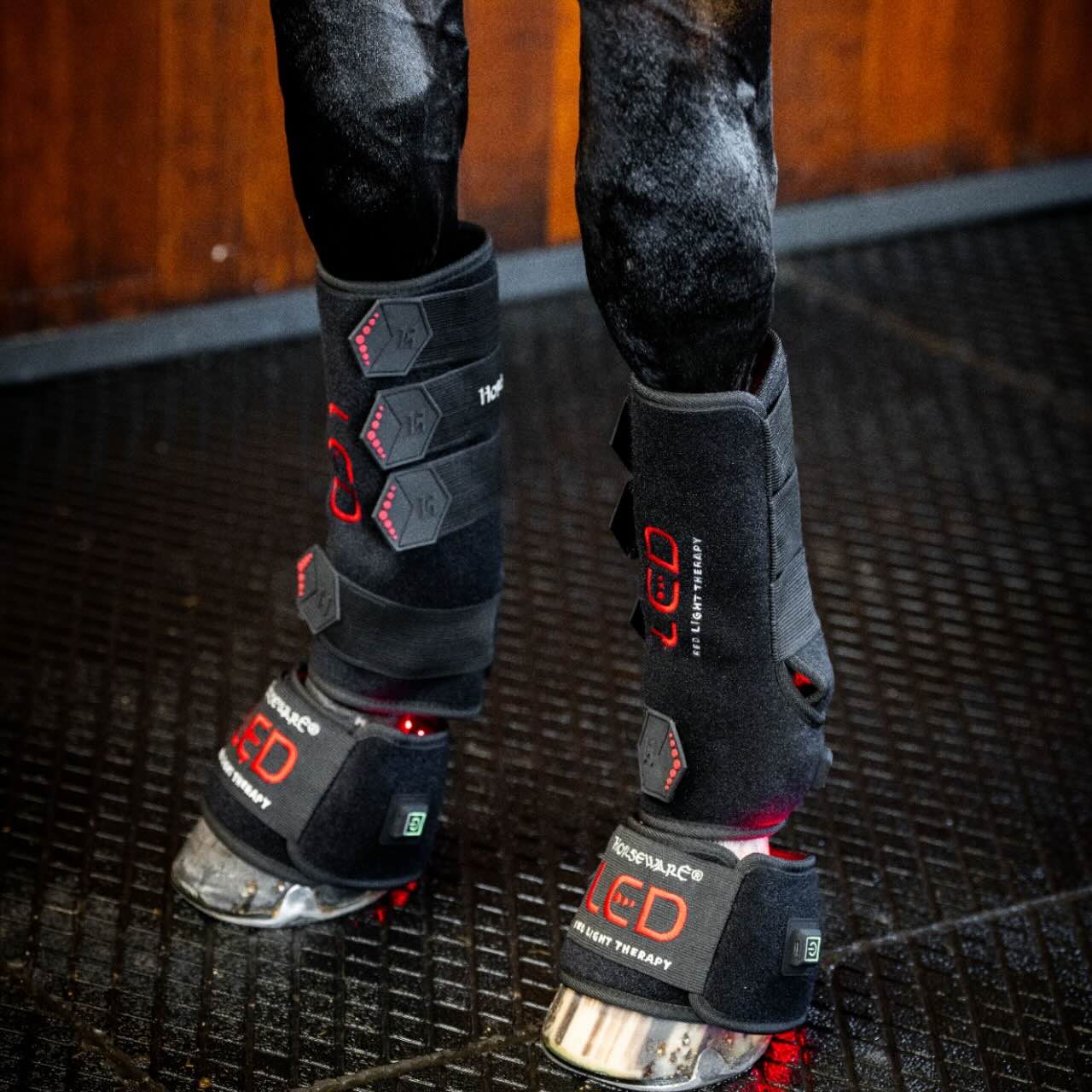 Die Horseware Therapiegamaschen sind mit 110 LEDs ausgestattet, die Rot- und Infrarotlicht kombinieren. Rotlicht mit 660 nm wirkt an der Hautoberfläche und unterstützt die Zellaktivität. Infrarotlicht mit 850 nm dringt tiefer ins Gewebe ein und erreicht Muskeln, Sehnen und Bänder. Diese Lichttherapie kann die Durchblutung fördern und die Regeneration unterstützen. Dein Pferd profitiert von gesteigerter Zellfunktion und mehr Wohlbefinden. Die Gamaschen eignen sich damit ideal für Training und Erholung.