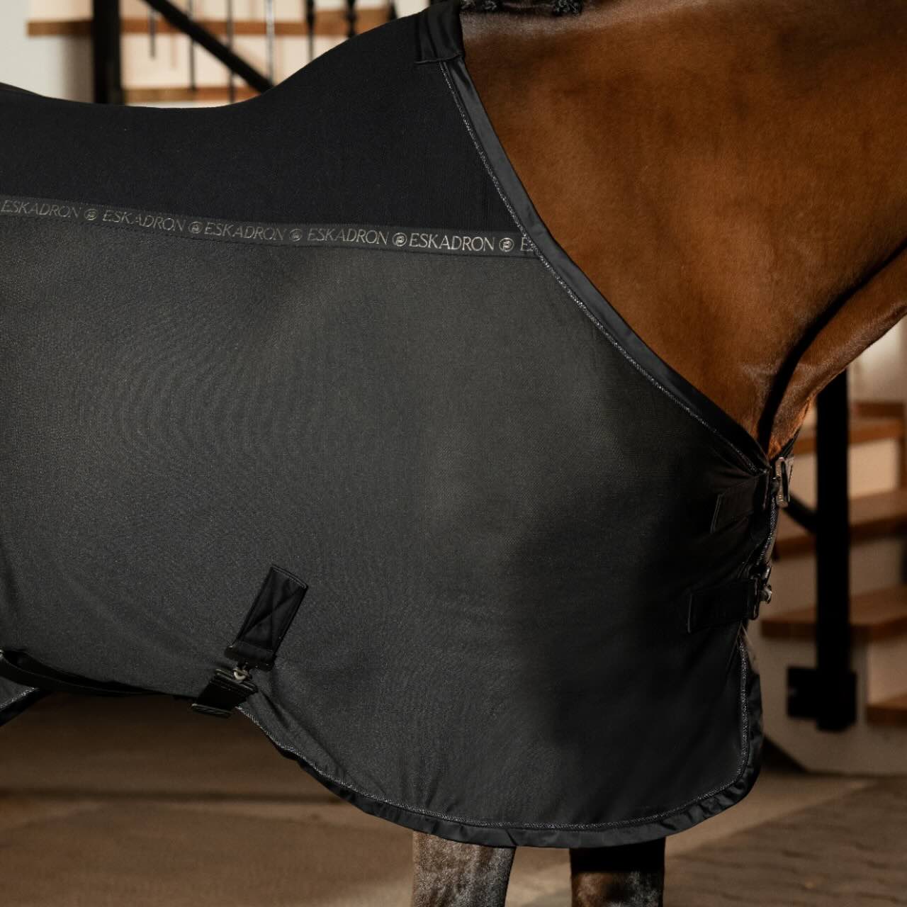 Eskadron Fliegendecke Pro Cover Platinum 2025 vereint effektiven Insektenschutz mit hoher Atmungsaktivität und elegantem Design. Mit ihrem engmaschigen Polyestergewirk und clever platzierten Mesh-Einsätzen bietet sie deinem Pferd optimalen Schutz und angenehmen Tragekomfort in der warmen Jahreszeit.