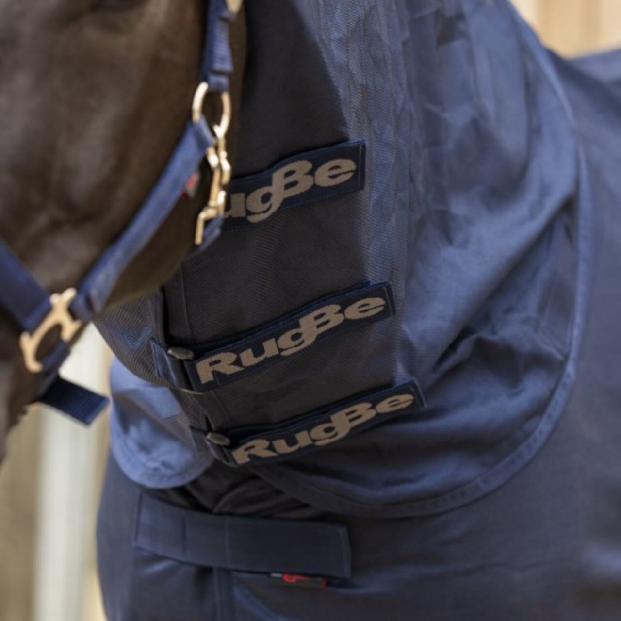 Die RugBe SuperFly wurde speziell für aktive Pferde auf der Weide entwickelt. Das leichte, aber strapazierfähige Material schränkt die Bewegungsfreiheit nicht ein. Elastische Beinschnüre verhindern ein Verrutschen, auch bei ausgelassenem Toben. Das abnehmbare Halsteil wird einfach mit praktischen Klettverschlüssen befestigt und sorgt für zusätzlichen Schutz. Der Brustbereich ist weich unterfüttert, um Scheuerstellen zu vermeiden. Der großzügige Schweiflatz schützt die empfindliche Hinterhand vor Insekten. Durch die gute Passform bleibt die Decke auch bei Wind zuverlässig an Ort und Stelle.