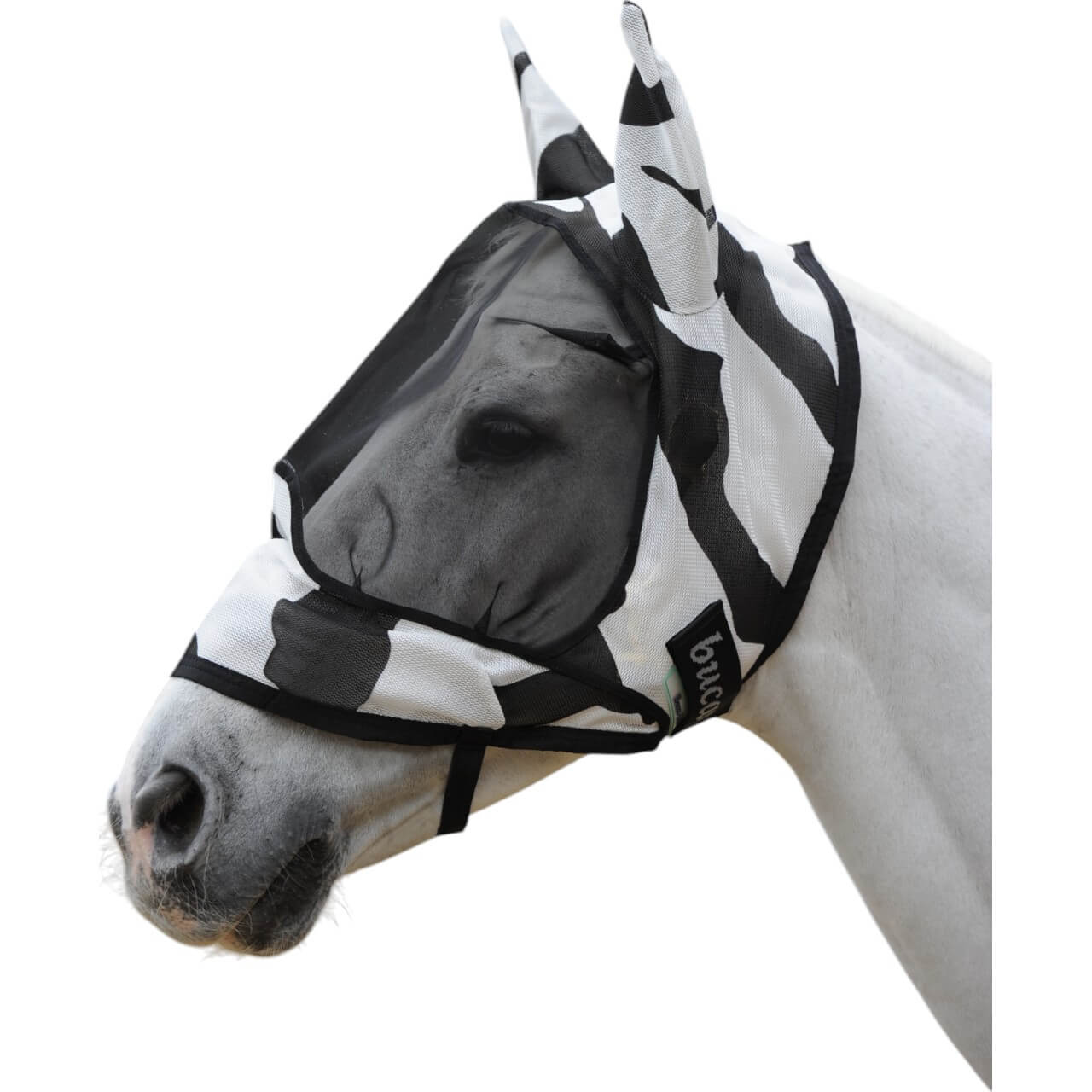 Mit ihrem auffälligen Zebra- und klassischen Blaumuster ist die Fliegenmaske Buzz-Off Deluxe nicht nur ein Hingucker, sondern auch praktisch. Die kontrastreichen Designs reflektieren Sonnenstrahlen und bieten zusätzlichen Schutz vor UV-Strahlung. Dank der verstärkten Abnäher bleibt das Netzgewebe stets in Form, ohne die Augen deines Pferdes zu berühren.
