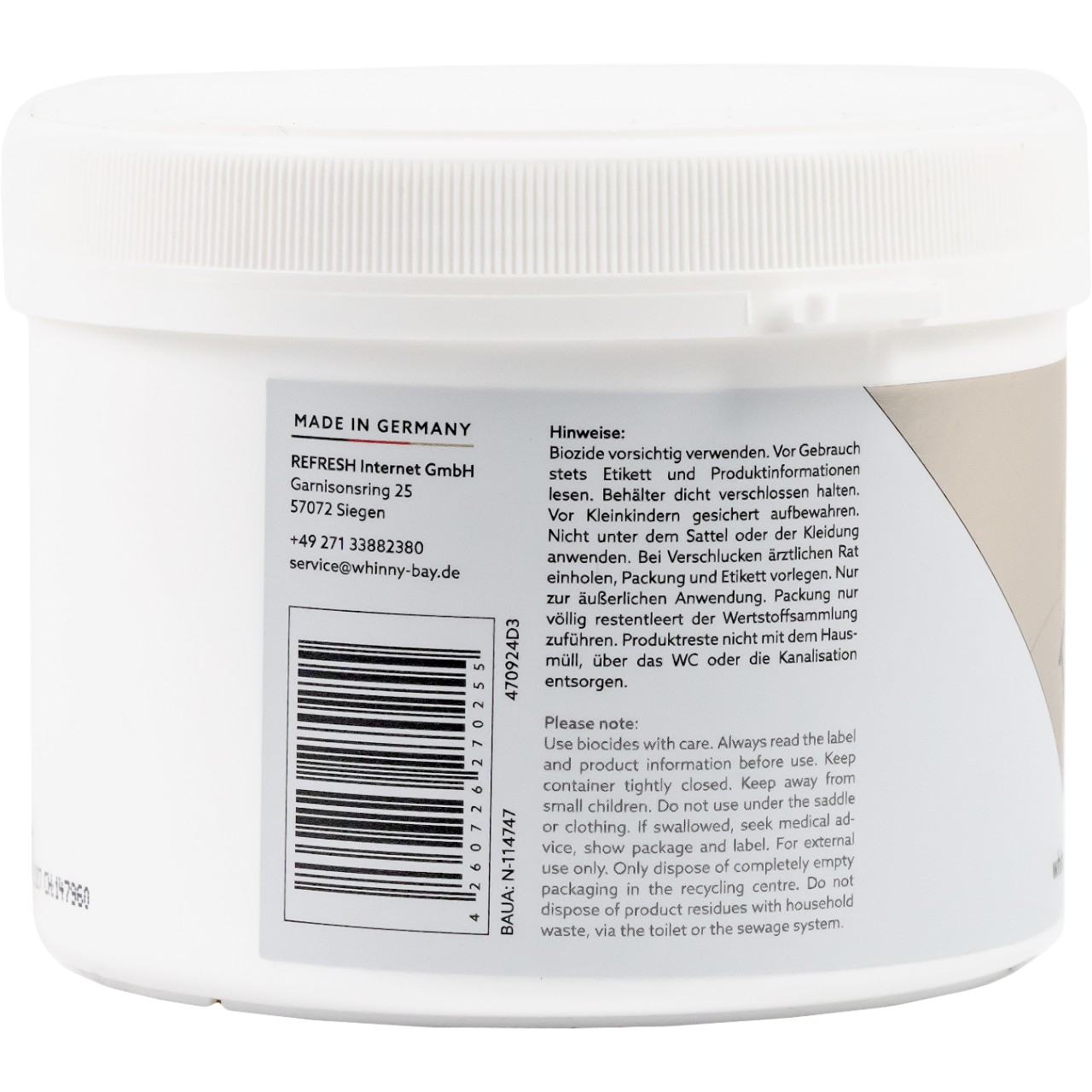 Nicht unter dem Sattel oder der Kleidung anwenden. Bei Verschlucken ärztlichen Rat einholen, Packung und Etikett vorlegen. Nur zur äußerlichen Anwendung. Packung nur völlig restentleert der Wertstoffsammlung zuführen. Produktreste nicht mit dem Haus-müll, über das WC oder die Kanalisation entsorgen.