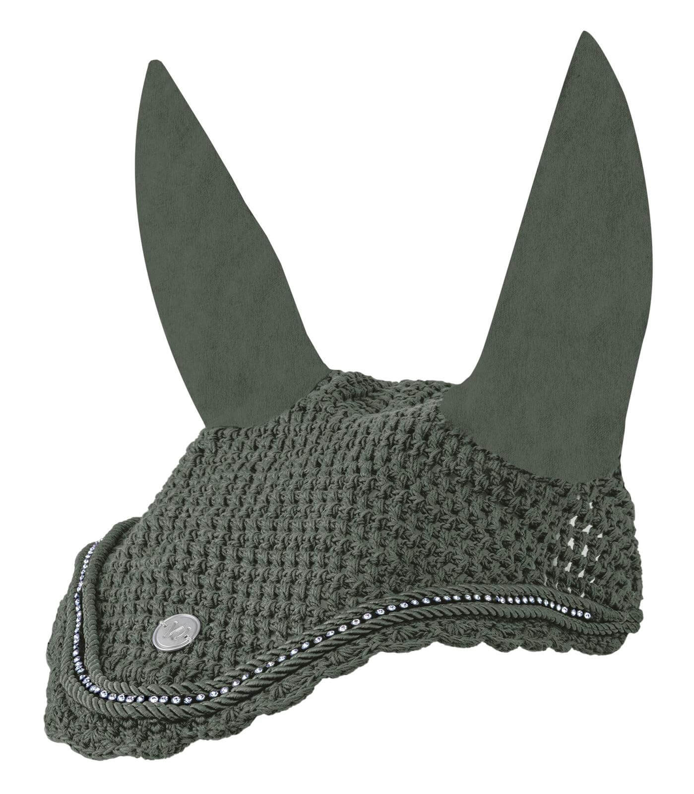 Die Fliegenohren Nepal Fliegenmütze besticht durch ihr edles Design mit einem schimmernden Strassband und einem dezenten Metallplättchen. Diese Details verleihen deinem Pferd ein exquisites Aussehen, das sowohl im Training als auch auf Turnieren beeindruckt. Die Farben Dunkeloliv, Zimt und Braun bieten vielseitige Kombinationsmöglichkeiten innerhalb der Nepal Kollektion.