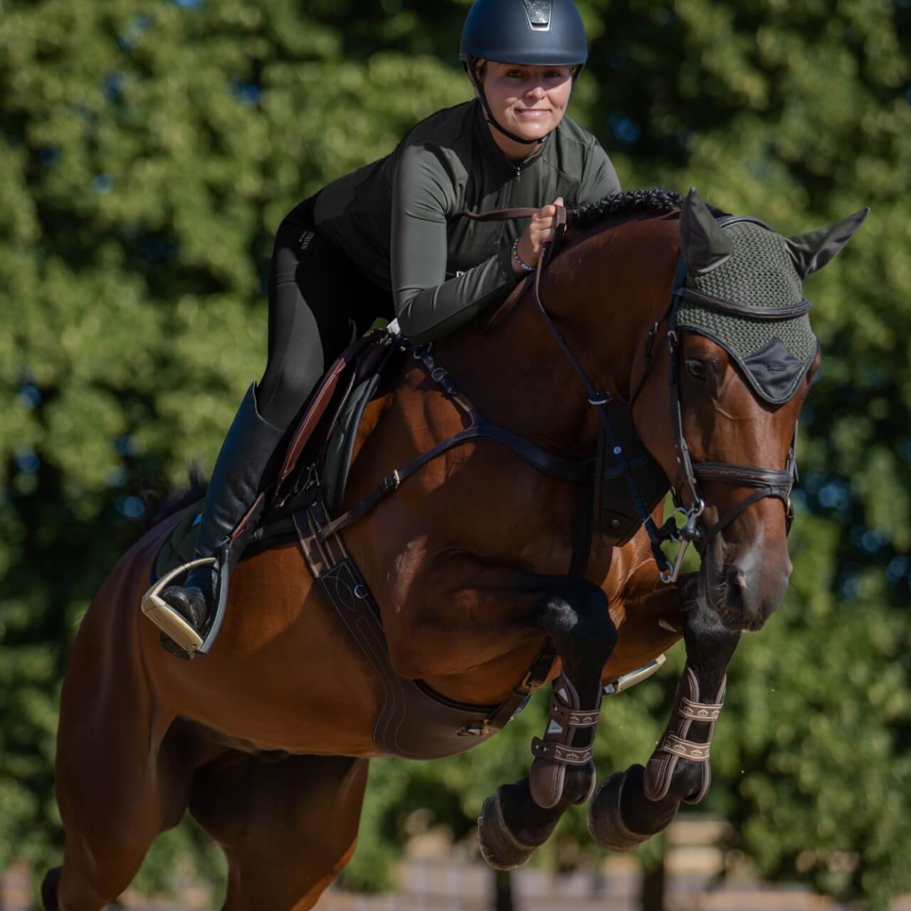 Die Fliegenhaube sitzt sicher, ohne Druckstellen zu verursachen. Das elastische Material sorgt für eine flexible Anpassung an verschiedene Kopfformen. Durch die durchdachte Schnittführung bleibt sie auch bei Bewegung an Ort und Stelle. Ideal für Training und Turnier, unterstützt sie dein Pferd mit uneingeschränkter Bewegungsfreiheit. Ein stilvoller Schutz mit durchdachter Funktionalität.