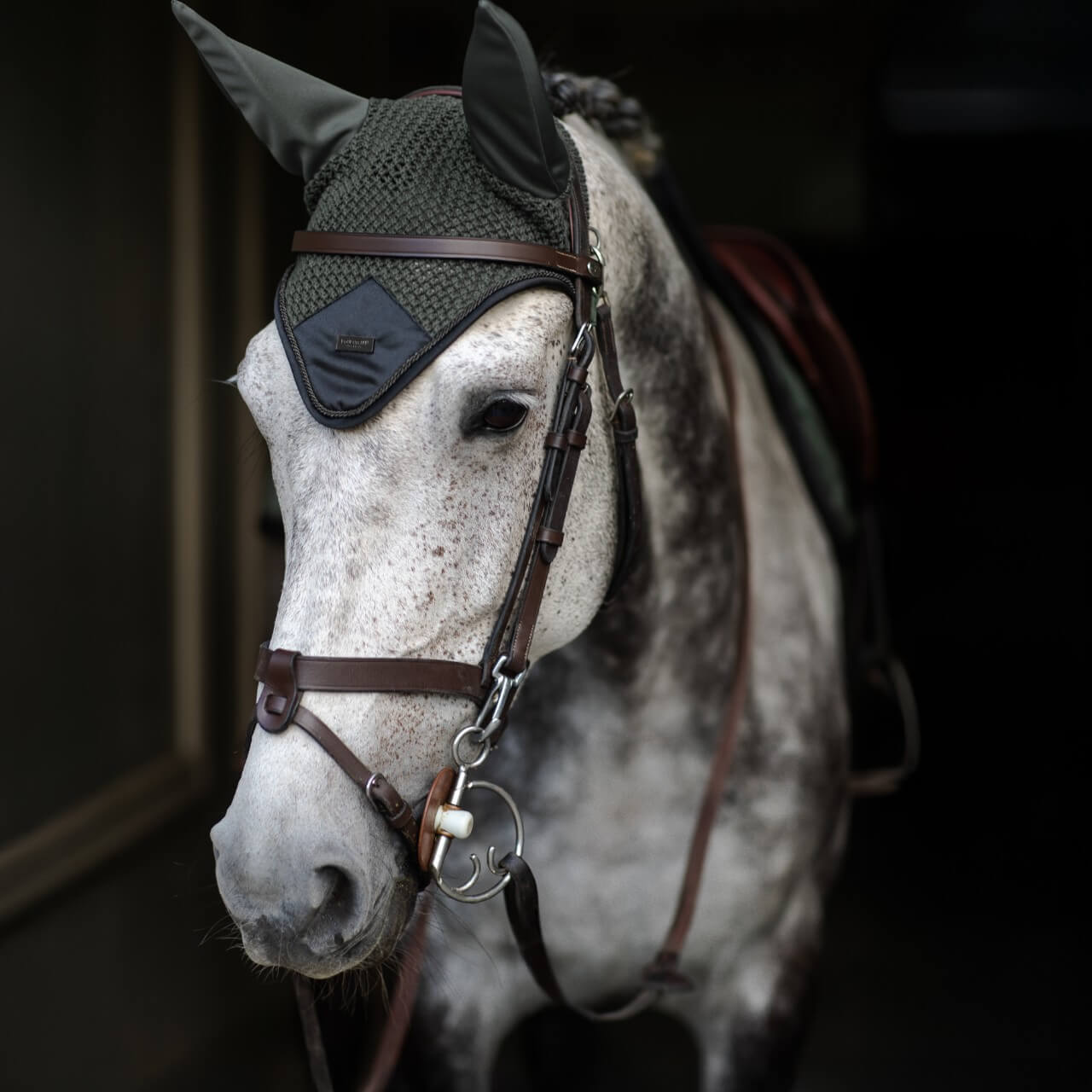 Mit ihrem luxuriösen Look ergänzt diese Fliegenmütze perfekt dein Reitoutfit. Die hochwertige Verarbeitung und das dezente Branding verleihen ihr eine exklusive Note. Dank der schlichten Farbgebung lässt sie sich vielseitig kombinieren. Egal ob im Alltag oder auf dem Turnier, dein Pferd sieht stets elegant aus. Setze ein modisches Statement mit dieser stilvollen Fliegenhaube.