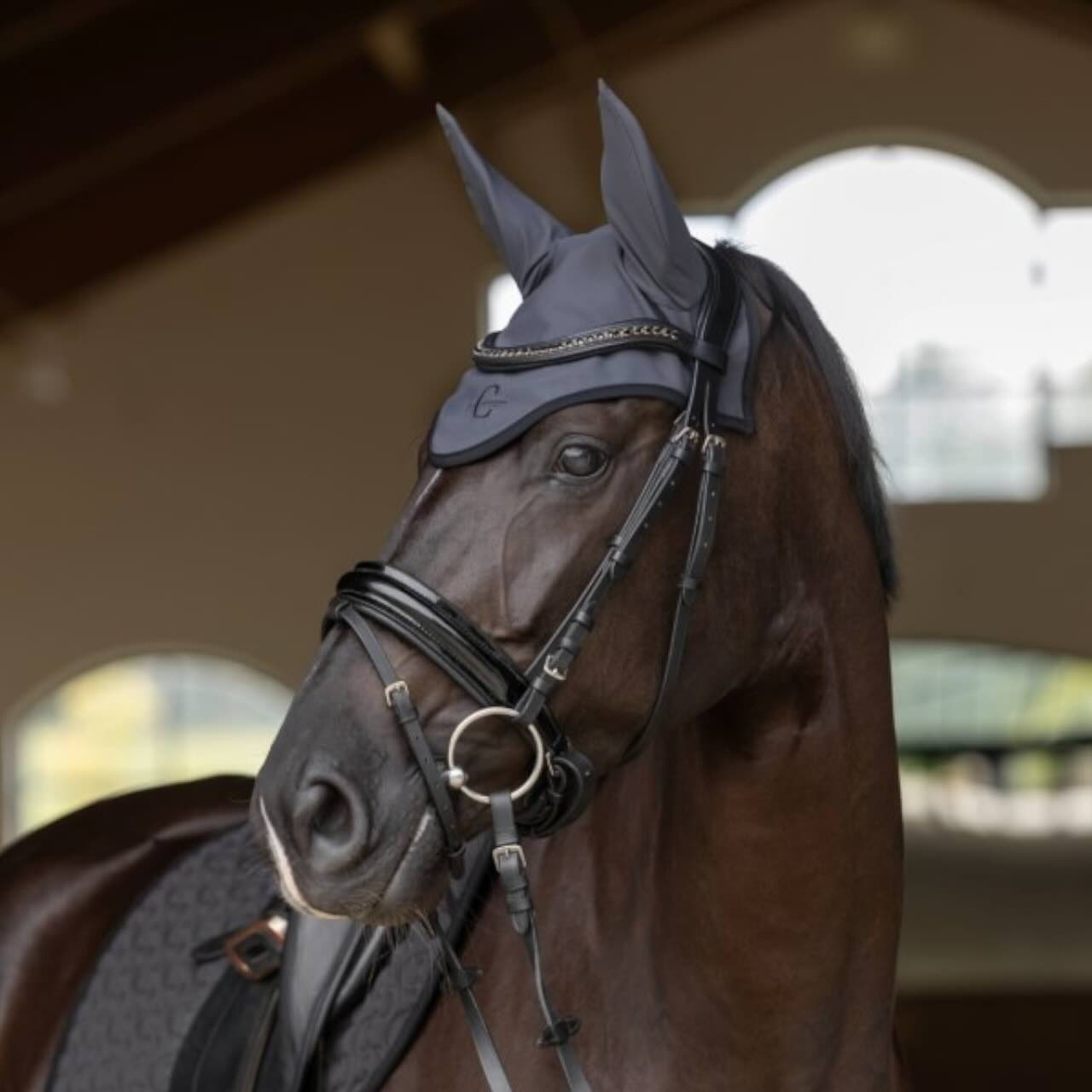 Covalliero Fliegenhaube Anniversary Kollektion 2025 Fliegenmütze schützt dein Pferd zuverlässig vor Fliegen, Stech- und Beißinsekten. Dank hochwertiger Materialien und durchdachtem Design eignet sich die Fliegenhaube perfekt für den täglichen Einsatz im Training ebenso wie für den eleganten Auftritt auf dem Turnier.