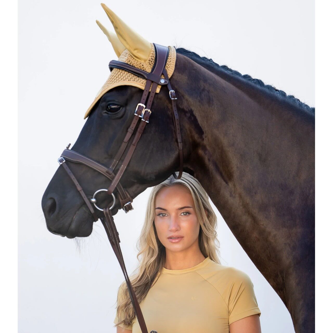 Die Equestrian Stockholm Fliegenhaube Midsummer Glow Fliegenmütze kombiniert stilvolles Design in edlem Senfgelb mit funktionalem Insektenschutz und hohem Tragekomfort. Sie schützt dein Pferd zuverlässig und setzt gleichzeitig ein modisches Statement im Training oder auf dem Turnier.