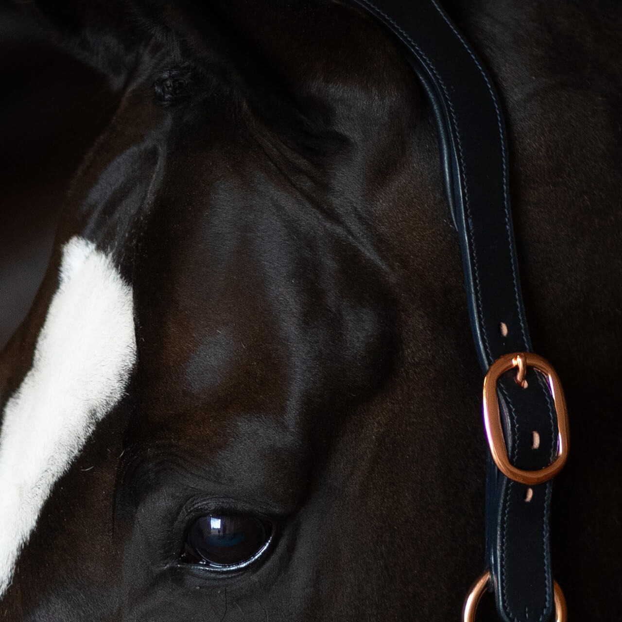 Lederhalfter Glimmer Leather Anatomic Halter Dark Ocean von Equestrian Stockholm vereint luxuriöses Design mit höchstem Komfort. Dieses Lederhalfter zeichnet sich durch seine exquisite Verarbeitung und die Verwendung von 100% pflanzlich gegerbtem Büffelleder aus. Es bietet nicht nur eine beeindruckende Ästhetik, sondern sorgt auch für das Wohlbefinden deines Pferdes.