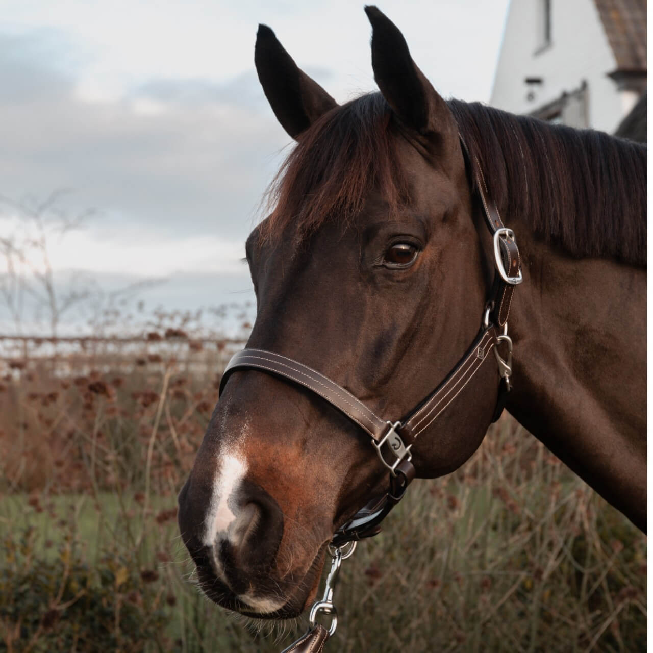 Mit seinem verstellbaren Kopfstück auf beiden Seiten ermöglicht das Halfter eine individuelle Anpassung für optimalen Sitz. Der Kehlriemen ist mit einem praktischen Schnappverschluss ausgestattet, um das Anlegen und Abnehmen zu erleichtern. Die ergonomische Konstruktion sorgt für höchsten Tragekomfort und eine gleichmäßige Druckverteilung.