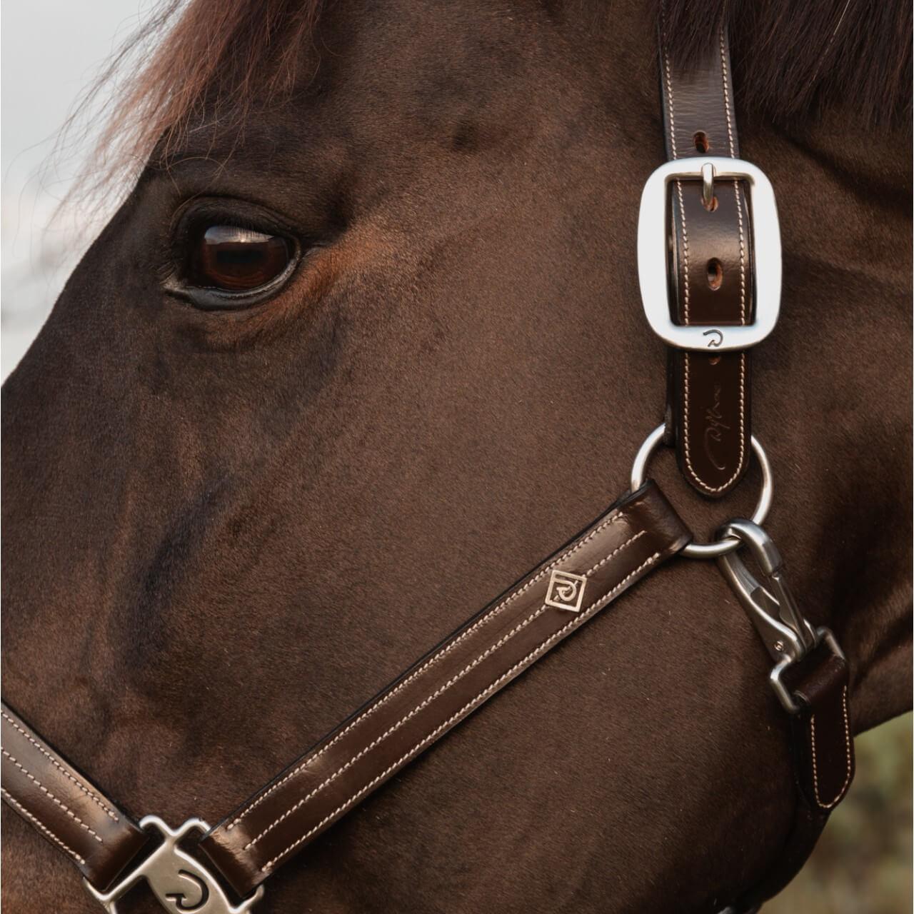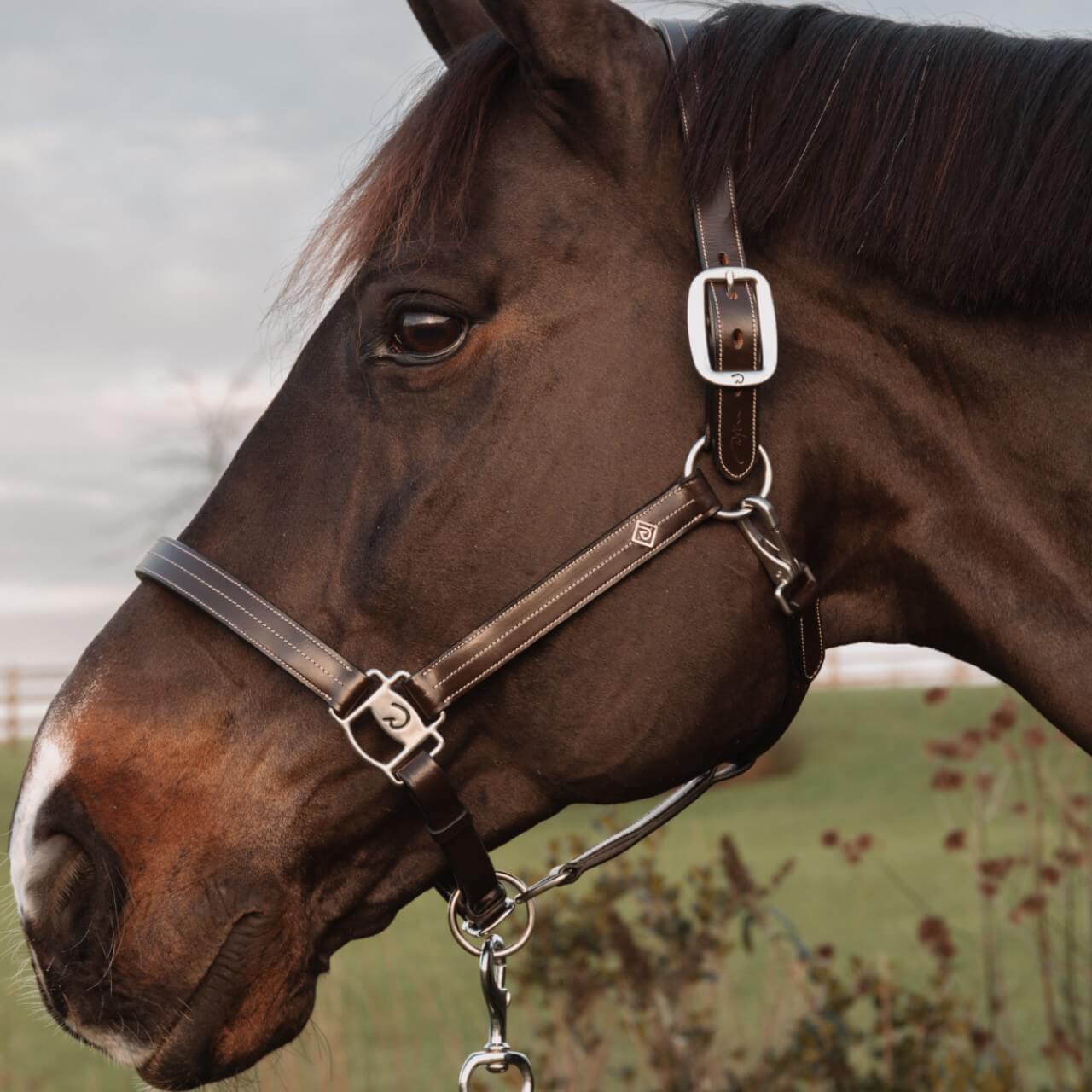 Das Dy'on US-Kopfhalfter besticht durch seine markante Optik und seine durchdachte Funktionalität. Das Design ist an den klassischen amerikanischen Stil angelehnt und bietet eine Kombination aus Robustheit und Eleganz. Mit den exklusiven, gravierten "D"-Schnallen setzt es ein stilvolles Statement im Stall oder auf Turnieren.