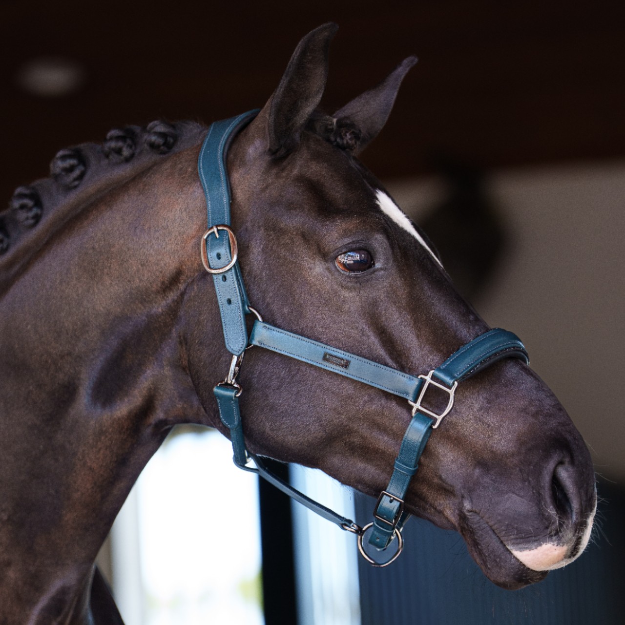 Equestrian Stockholm Halfter Glimmer Anatomic Teal Blue kombiniert stilvolle Eleganz mit funktionaler Raffinesse. Das anatomisch geformte Lederhalfter überzeugt durch einen hohen Tragekomfort, edle Glitzerdetails und nachhaltige Materialwahl. Ideal für Turniere, Transporte oder den täglichen Einsatz – dieses Halfter ist ein echtes Highlight für anspruchsvolle Reiterinnen und Reiter.