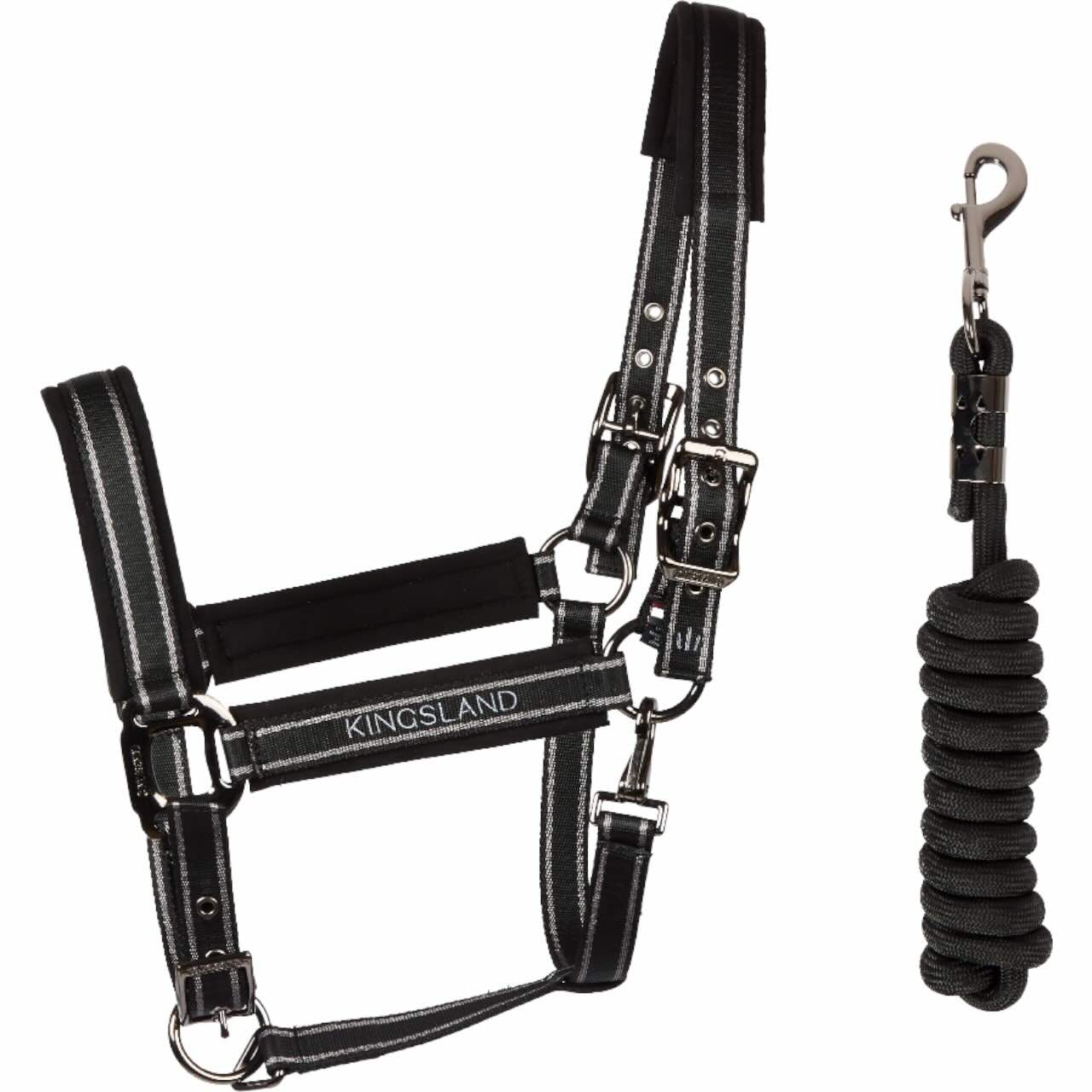 Die dezente Kingsland-Lurex-Stickerei auf den Backenstücken verleiht dem Halfter einen edlen Touch. Abgerundet wird das Design durch ein gesticktes Kronenemblem auf dem Nackenteil. Hochwertige Beschläge in Waffenmetalloptik setzen moderne Akzente und stehen gleichzeitig für Langlebigkeit. Das beiliegende Führseil passt optisch perfekt zum Halfter und vervollständigt das Gesamtbild. Dadurch eignet sich das Set auch ideal für Turniere oder Stallpräsentationen. Funktion und Ästhetik gehen hier Hand in Hand.
