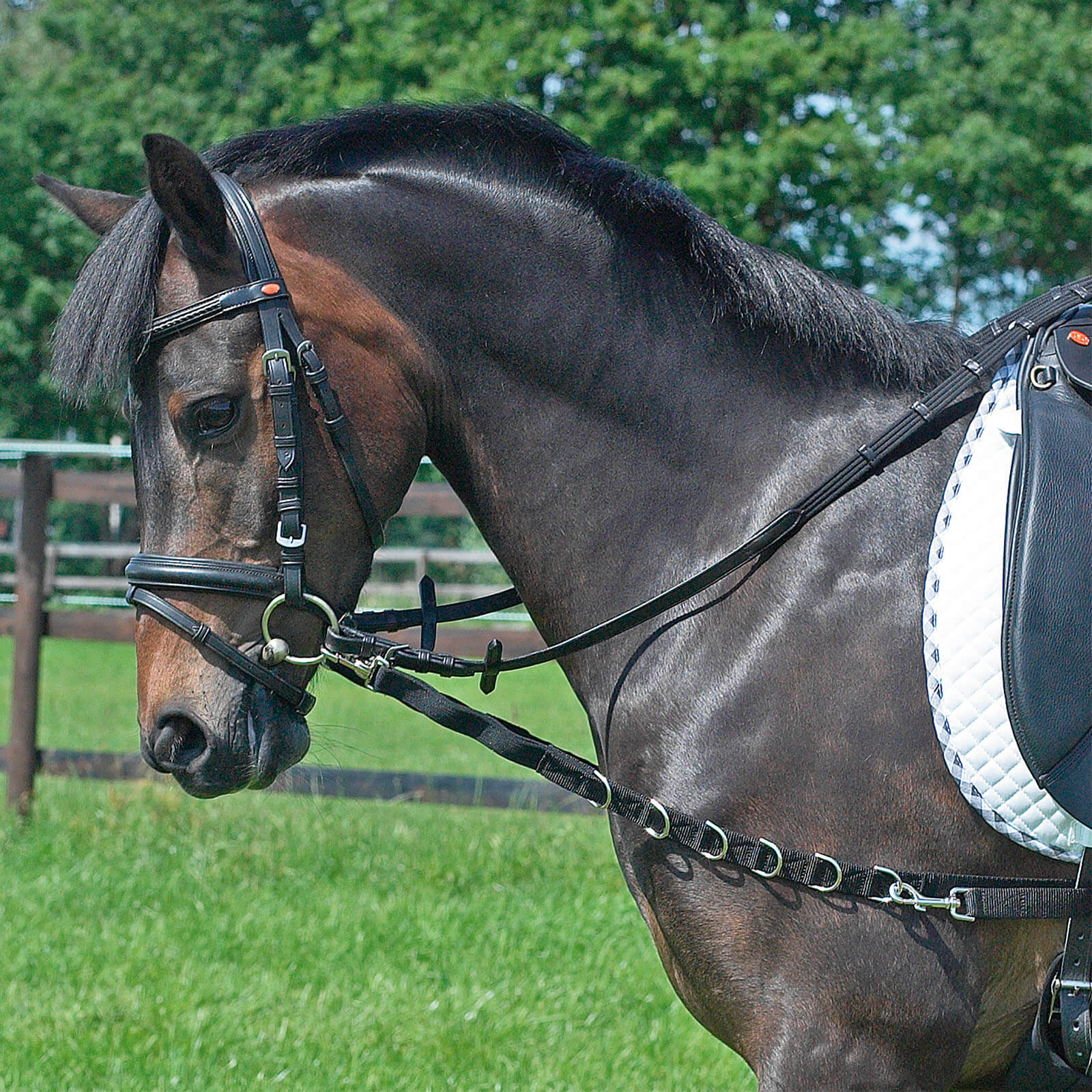 Wähle ein Modell, das den speziellen Bedürfnissen des Pferdes, den Einsatzzwecken und den Trainingszielen entspricht. Dies ist individuell für jedes Pferd und im Zweifelsfall sollte ein Experte zu Rate gezogen werden. Beachte stets, dass Hilfszügel verantwortungsvoll und unter Berücksichtigung des Pferdewohls eingesetzt werden sollten. Um die Langlebigkeit der Materialien zu erhalten, müssen die Komponenten der Hilfszügel regelmäßig gereinigt, gepflegt und auf Defekte überprüft werden. Das Produkt sollte nur verwendet werden, wenn es voll funktionsfähig ist.