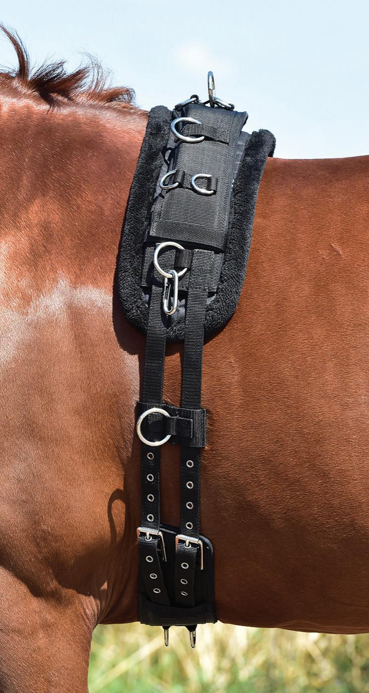 - Klettverschluss auf beiden Seiten zur Befestigung des Longiergurtes