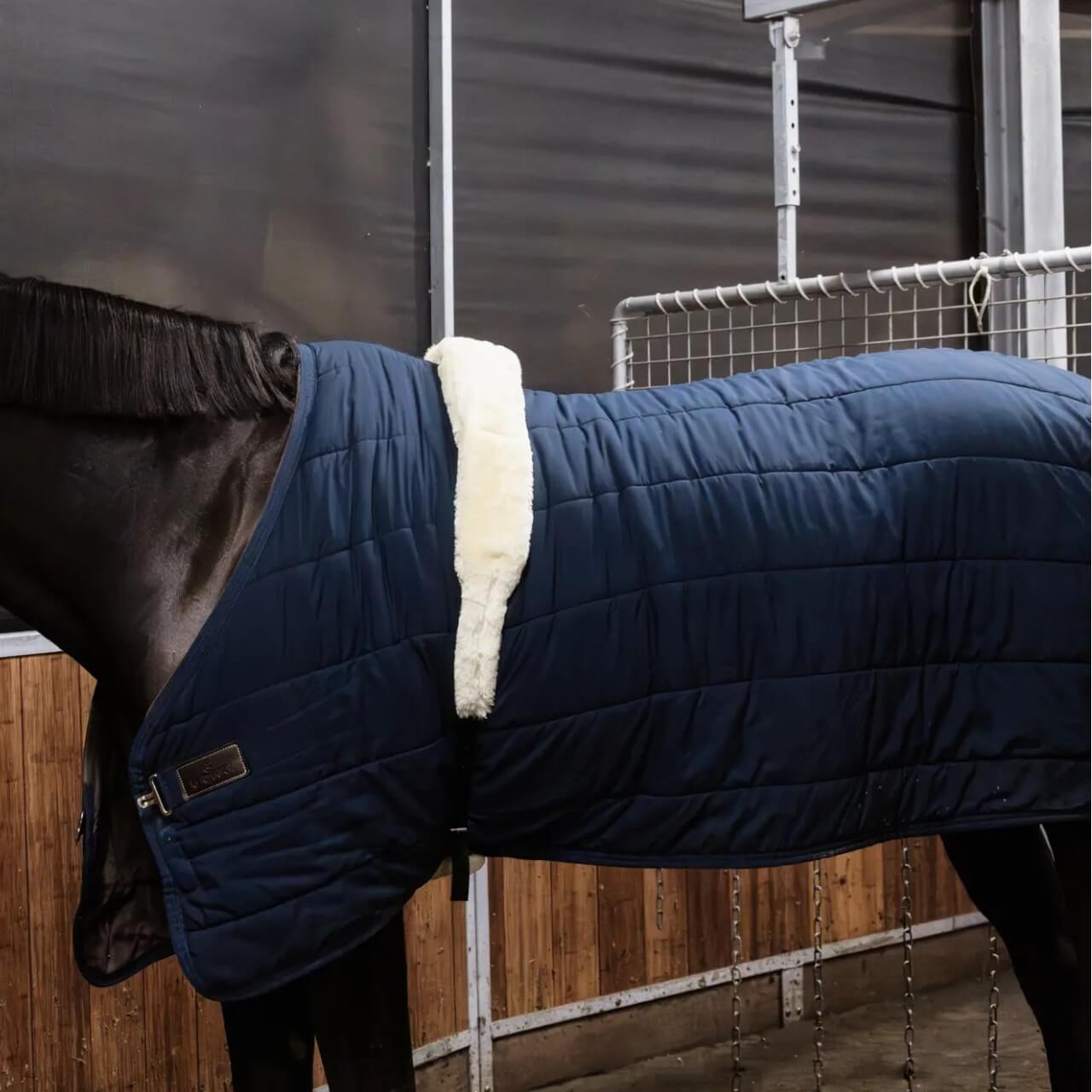 Der Führanlagengurt besticht durch sein edles, schwarzes Design, das sich ideal über jeder Decke verwenden lässt. Das künstliche Lammfell auf der Oberseite sorgt nicht nur für einen luxuriösen Look, sondern schützt auch die Haut deines Pferdes vor Reibung und Scheuerstellen. So bleibt die Schulterbewegung deines Pferdes frei und ungehindert.