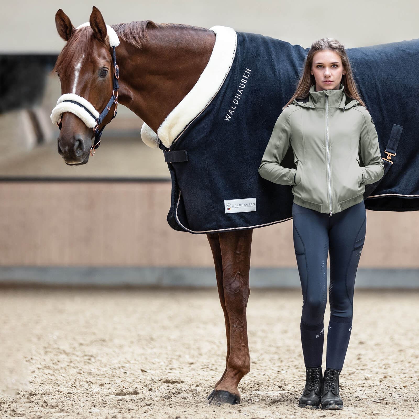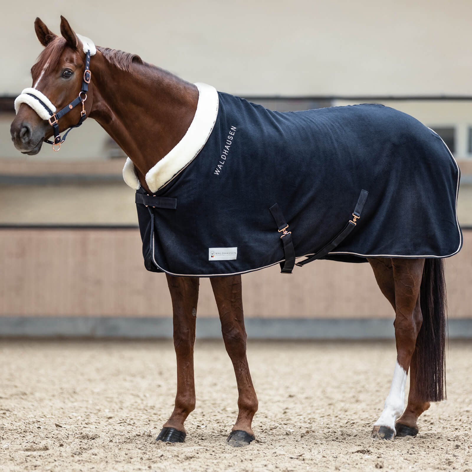 Abschwitzdecke Modern Rosé von Waldhausen vereint stilvolles Design mit herausragender Funktion. Die elegante Fleecedecke mit roségoldenen Akzenten sorgt nicht nur für einen edlen Auftritt, sondern überzeugt auch durch ihre optimale Abschwitzfunktion, die dein Pferd angenehm trocken hält.