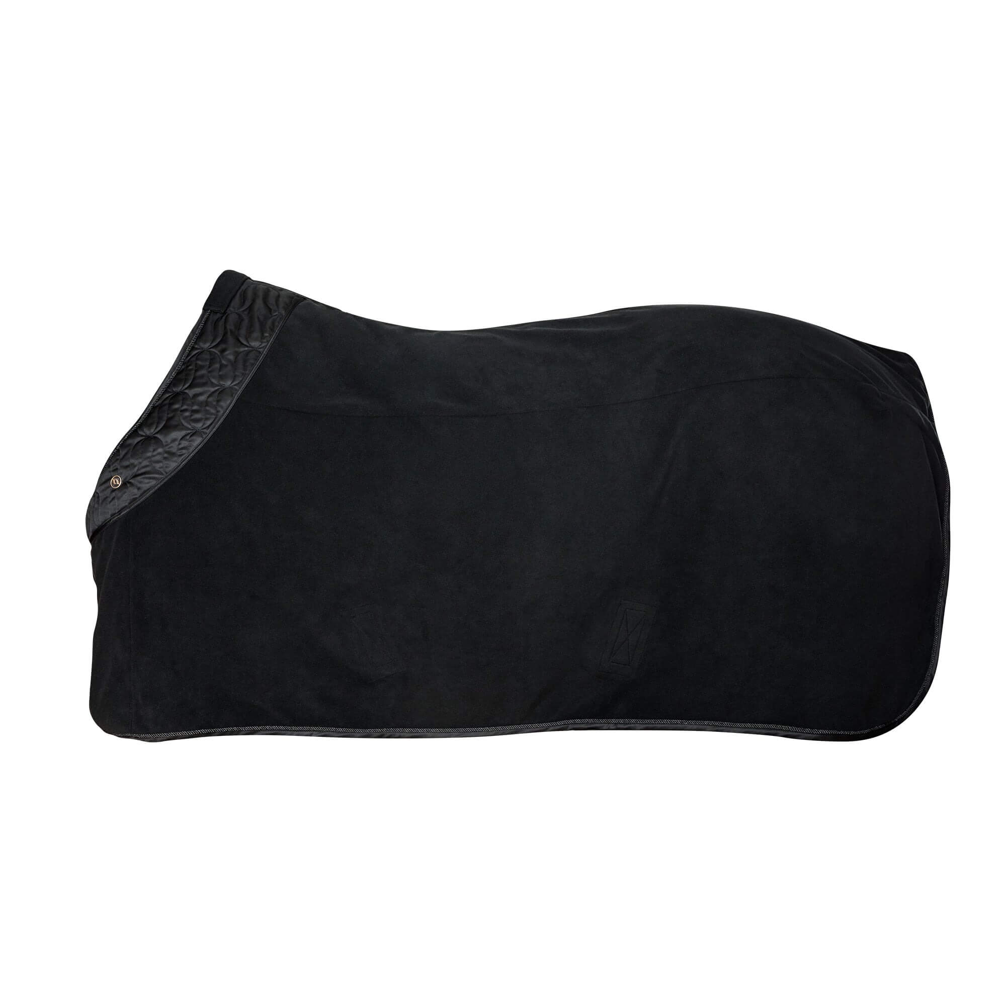 Die schwarz gehaltene Deep Nights Fleecedecke besticht durch schlichte Eleganz und geschmackvolle, matte Golddetails. Das einzigartige Steppmuster am Hals verleiht der Decke nicht nur eine attraktive Optik, sondern sorgt auch für zusätzliche Stabilität und Sitz. Dieses Design ist nicht nur ein Blickfang im Stall, sondern bietet auch eine hervorragende Passform für den täglichen Einsatz.