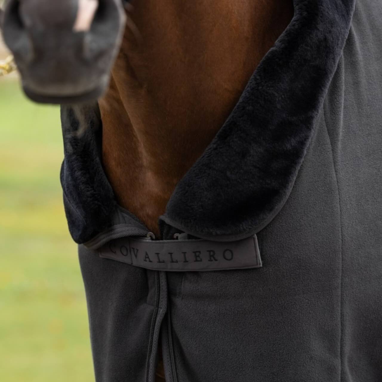 Die Covalliero Abschwitzdecke Anniversary Kollektion überzeugt durch ihr edles Erscheinungsbild und ihren hohen Tragekomfort. Das Design ohne Bauchgurte ermöglicht ein schnelles und unkompliziertes An- und Ausziehen, ideal für den flexiblen Einsatz. Stilvolle Logo-Details unterstreichen den exklusiven Charakter dieser Decke. Perfekt geeignet als Abschwitz-, Transport- oder Paradedecke begleitet sie dein Pferd bei vielfältigen Gelegenheiten.