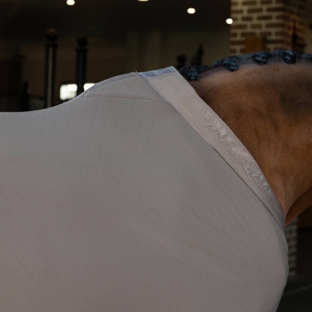 Ein stilvolles Highlight ist die elegante Metallic-Biese auf der Softshell-Einfassung. Sie verleiht der Decke einen edlen Look und macht sie zum Blickfang auf dem Turnier oder im Alltag. Dank der pflegeleichten Materialien bleibt die Decke formstabil und langlebig – auch bei regelmäßigem Gebrauch. Mit ihrer durchdachten Ausstattung bietet sie vielseitige Einsatzmöglichkeiten. So ergänzt sie deine Pferdeausstattung ideal und verbindet Funktionalität mit modernem Design.