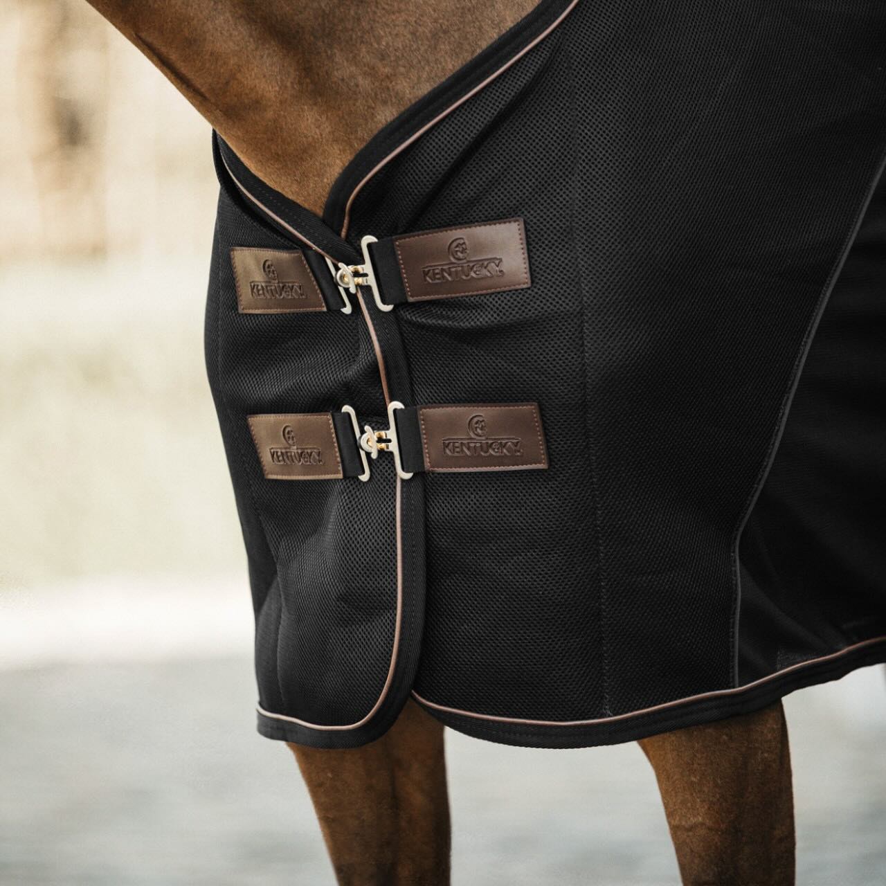Die Kentucky Fliegen-Kombi Abschwitzdecke vereint Funktionalität, Komfort und ein luxuriöses Design. Durch ihre durchdachte Materialkombination ist sie vielseitig einsetzbar und bietet deinem Pferd optimalen Schutz, ob beim Abkühlen, Trocknen oder gegen lästige Insekten.