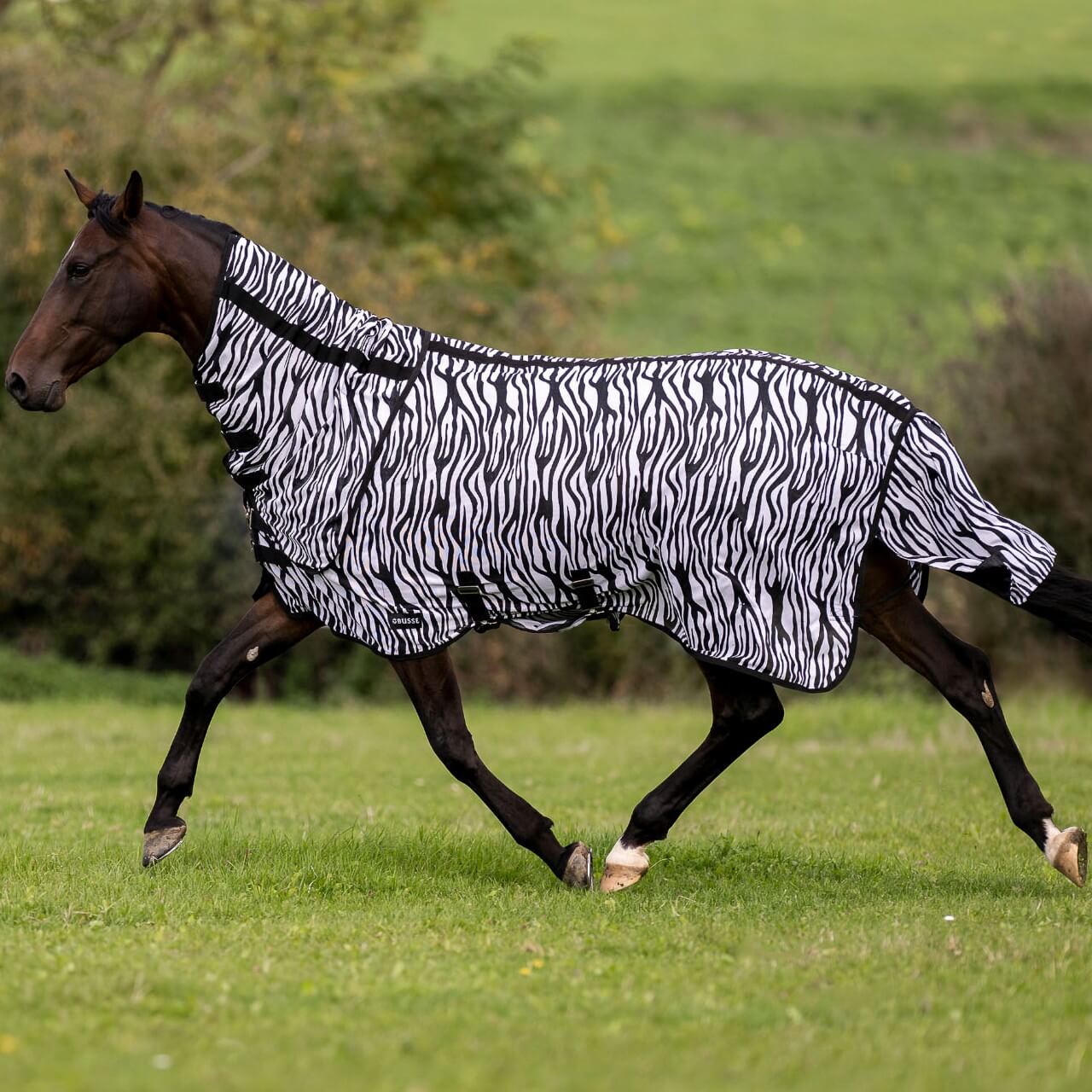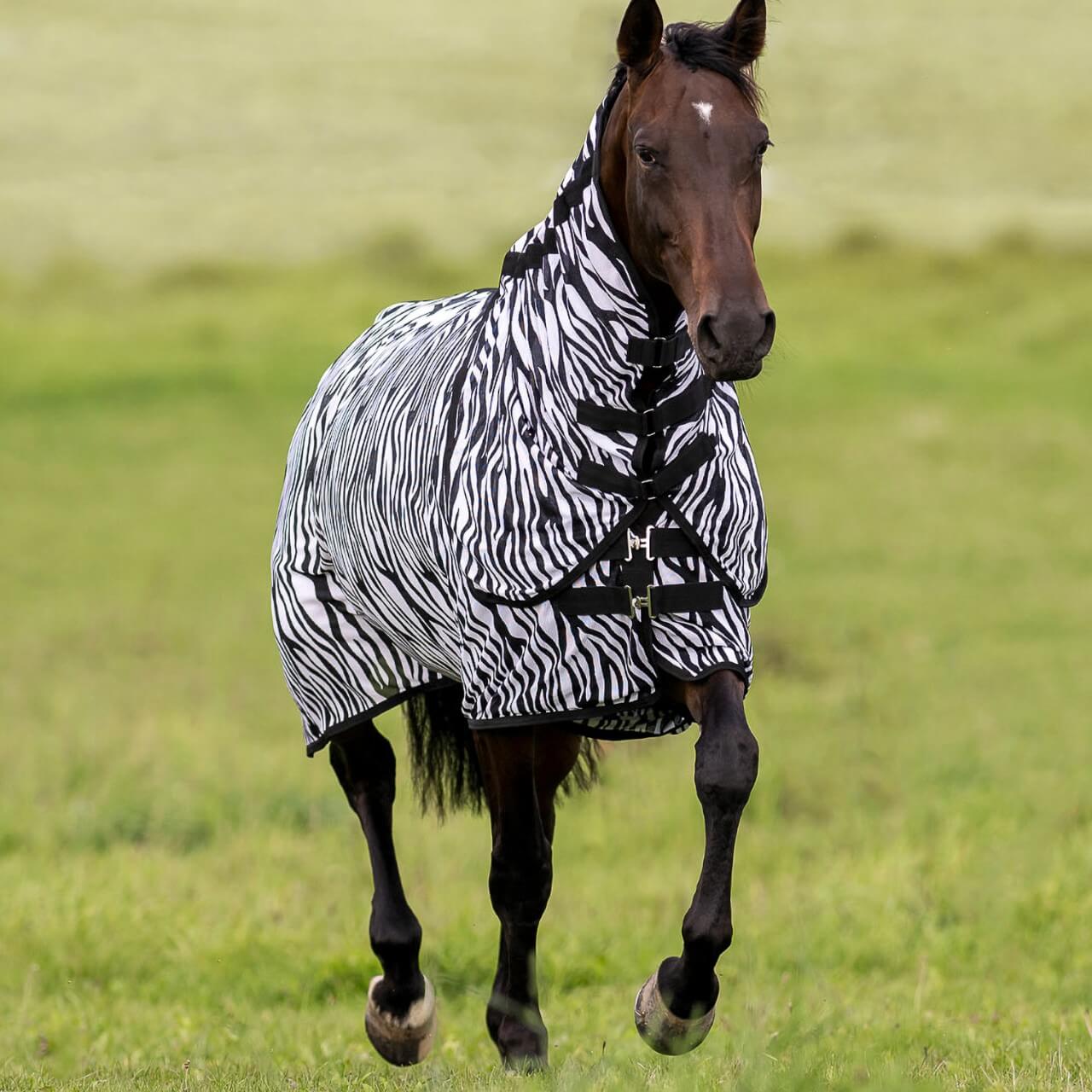 - das schwarz-weiße Zebra-Muster sorgt zusätzlich für einen natürlichen Anti-Bremsenschutz: Studien haben gezeigt, dass Pferde durch dieses Muster von Pferdebremsen nicht mehr als Ziel anvisiert werden