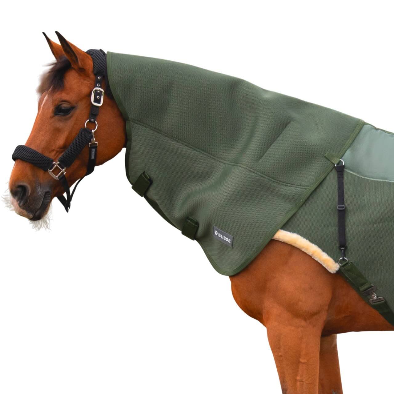 Das BUSSE Halsteil für Bewegungsdecke 3D Air lässt sich mühelos mit den passenden Bewegungsdecken 3D AIR ST und 3D AIR FL verbinden. Ein stabiles Klettsystem sorgt für sicheren Halt, während handliche Klettverschlüsse das An- und Ablegen erleichtern. Abnehmbare, längeneinstellbare Elastikgurte verhindern, dass das Halsteil bei Bewegung oder Wind verrutscht. So bleibt es stets in Position und schützt zuverlässig den empfindlichen Halsbereich. Diese funktionale Verbindung ermöglicht deinem Pferd maximale Bewegungsfreiheit und Komfort beim Training.
