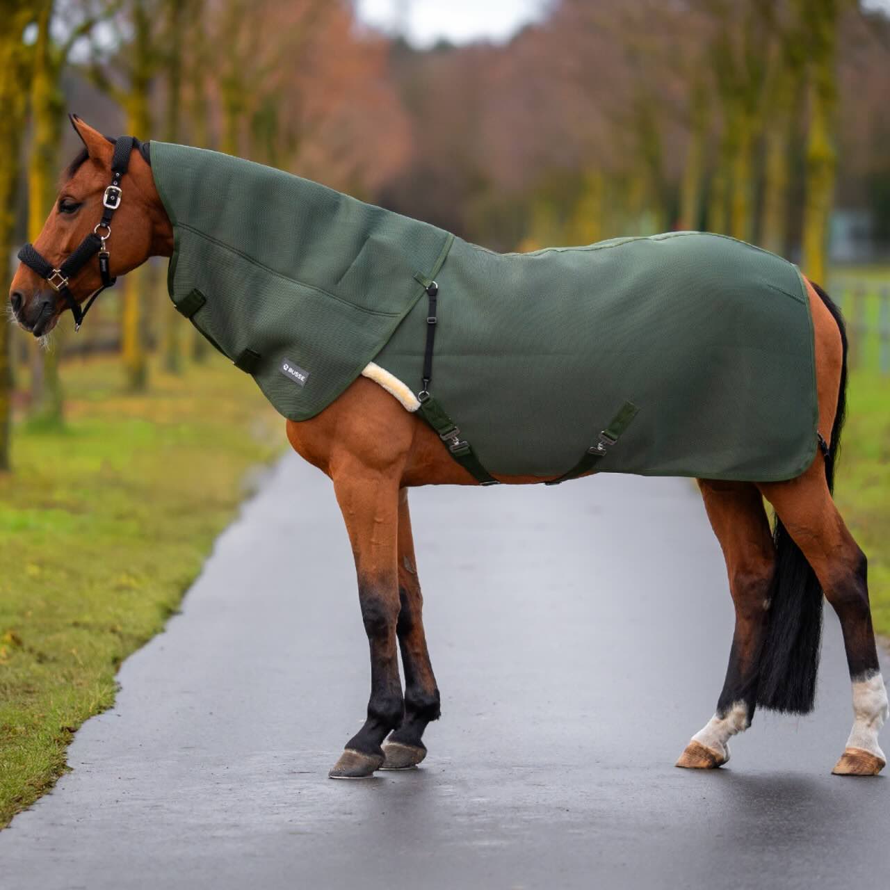 Das hochfunktionelle 3D AIR® DRY Material bietet durch seine spezielle Struktur eine enorme Oberflächenvergrößerung, wodurch die Verdunstung beschleunigt wird. So wird überschüssige Feuchtigkeit effektiv nach außen transportiert, und dein Pferd bleibt angenehm trocken. Besonders geeignet ist das Halsteil für Pferde mit dichtem Fell, die zum Nachschwitzen neigen oder geschoren sind. Auch bei wärmeren Temperaturen oder in der Übergangszeit sorgt es für ein ausgeglichenes Tragegefühl. Das Halsteil unterstützt die natürliche Thermoregulation und trägt so zum Wohlbefinden deines Pferdes bei.