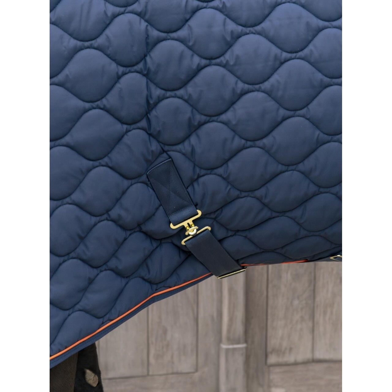 Die Stalldecke 160g Wave Übergangsdecke passt sich durch ihre ergonomische Schnittführung ideal an den Pferdekörper an. Zwei Frontschnallen und verstellbare Bauchgurte garantieren sicheren Halt und einfaches Anlegen. Am Widerrist sorgt ein Einsatz aus künstlichem Schaffell für zusätzlichen Komfort. Die Decke ist in edlem Dunkelgrün oder Marineblau mit einer eleganten orangefarbenen Kordel erhältlich. Maschinenwaschbarkeit bei 30°C erleichtert die Pflege, auf den Trockner sollte dabei verzichtet werden. Mit ihrer Kombination aus Stil, Funktionalität und Strapazierfähigkeit ist diese Decke ein Muss für jeden Pferdebesitzer.
